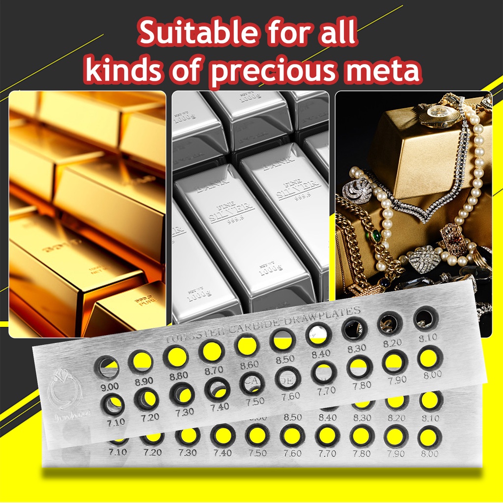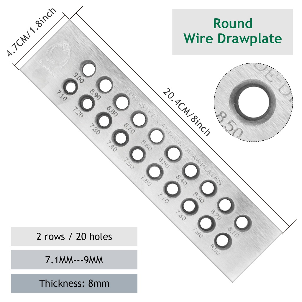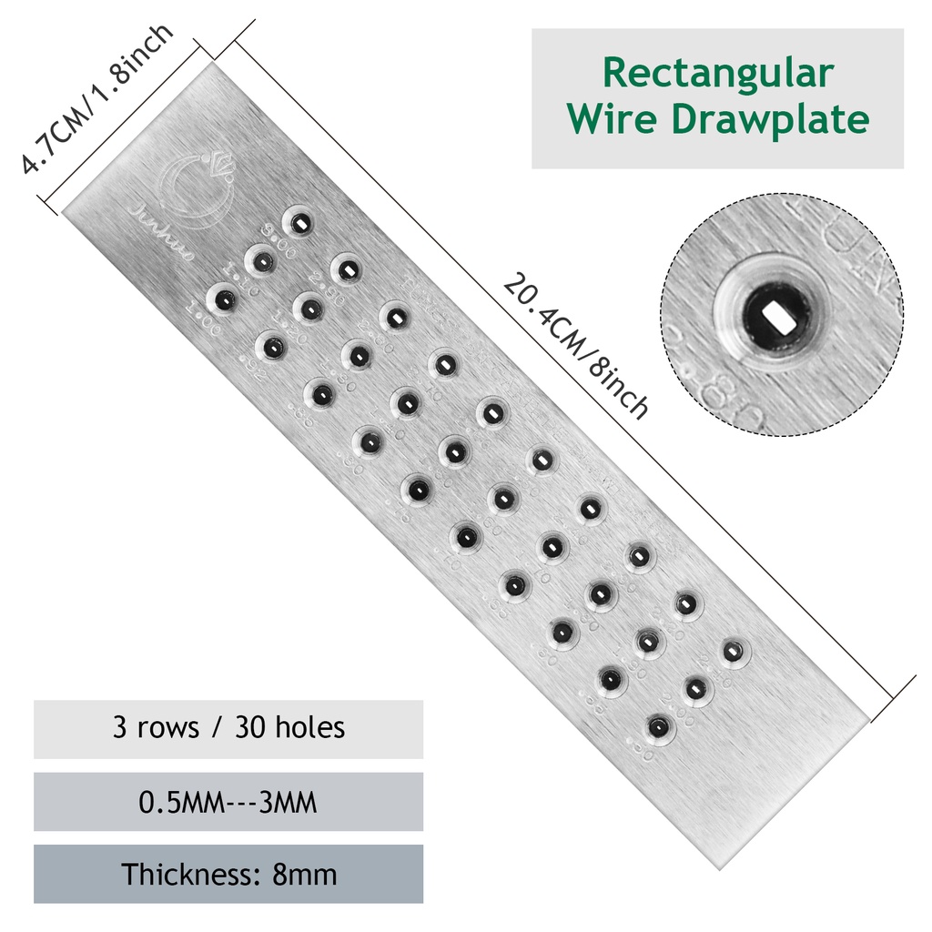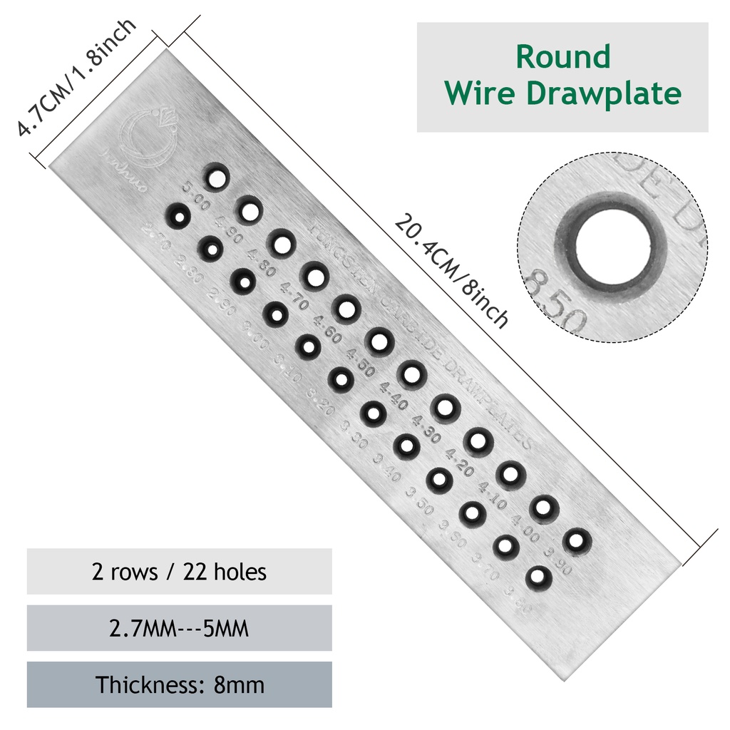 Tungsten Carbide Wire Drawplate Square/Half Round Shape 0.26-9.0mm 20/50 Holes Stainless Steel Drawing Plate for Jewelry Making