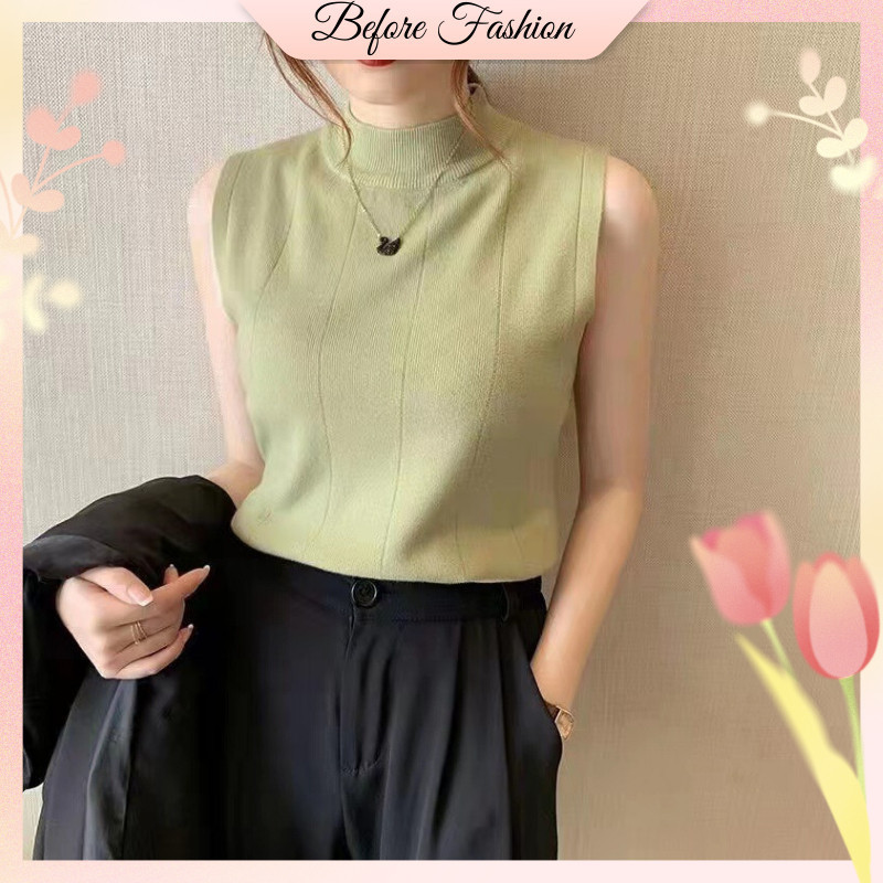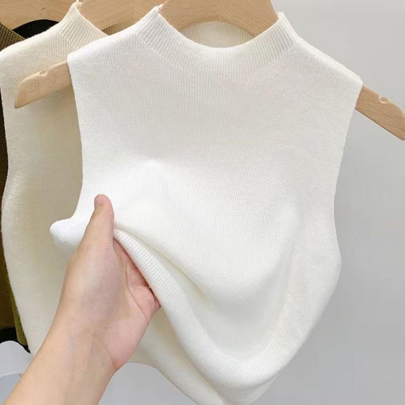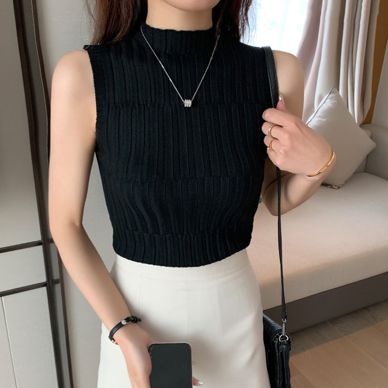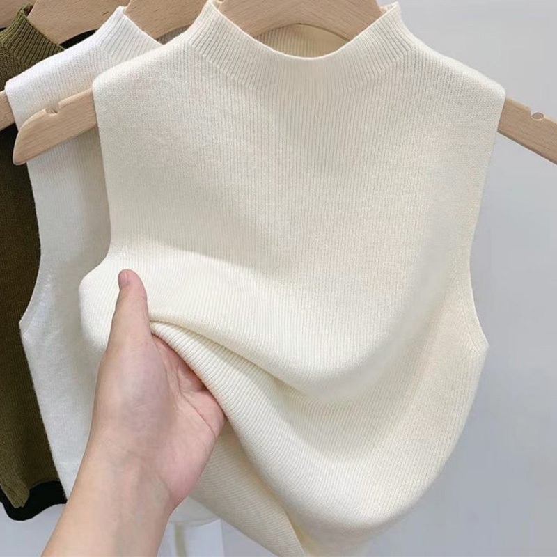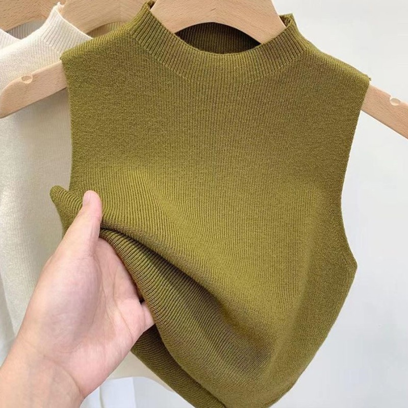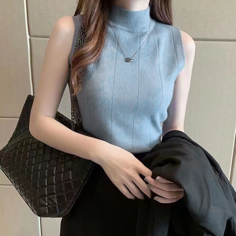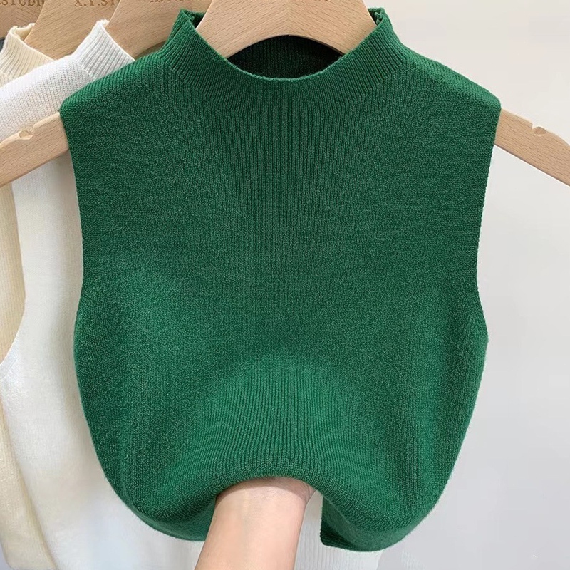 Turtleneck Sleeveless for Women Vest Top Autumn New Pullover Knit Casual Half High Neck Tank Top BE