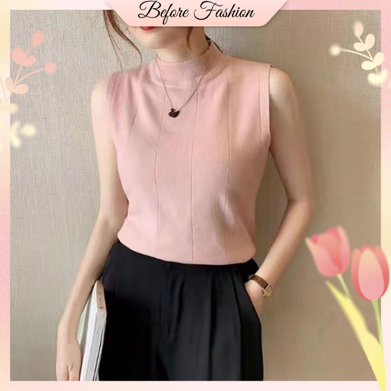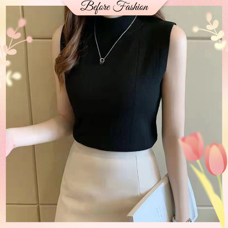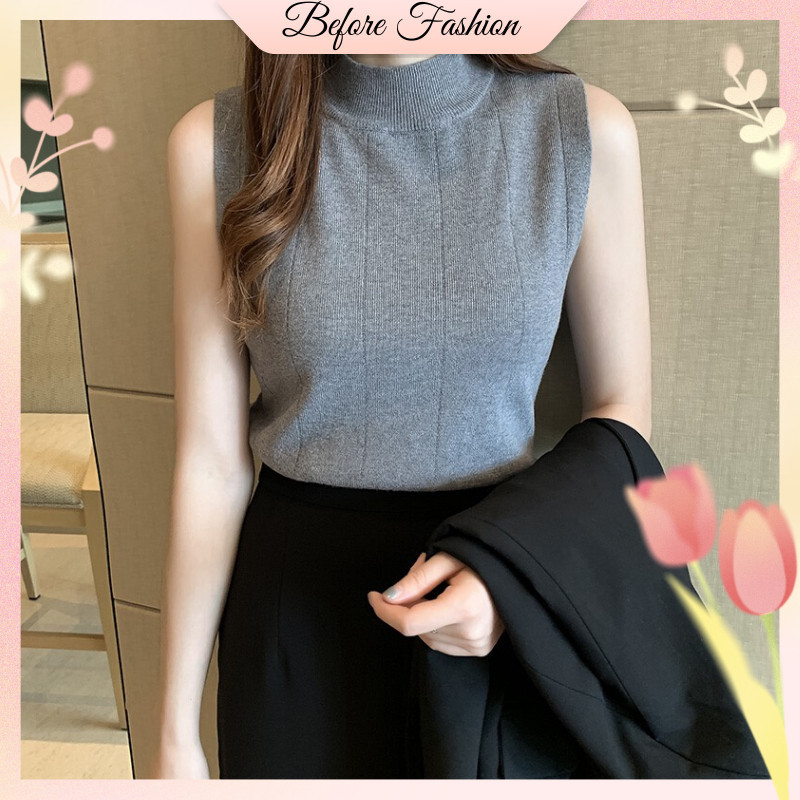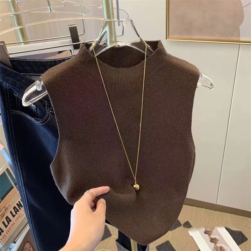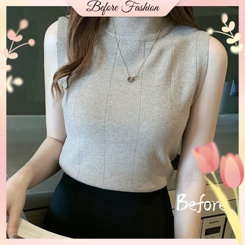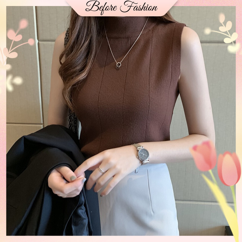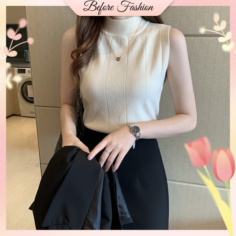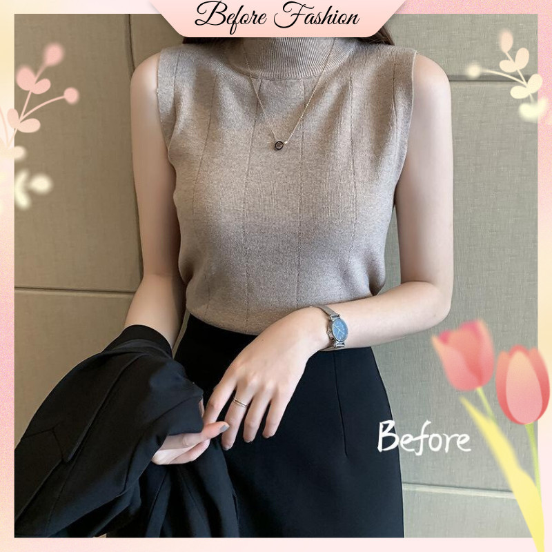 Turtleneck Sleeveless for Women Vest Top Autumn New Pullover Knit Casual Half High Neck Tank Top BE