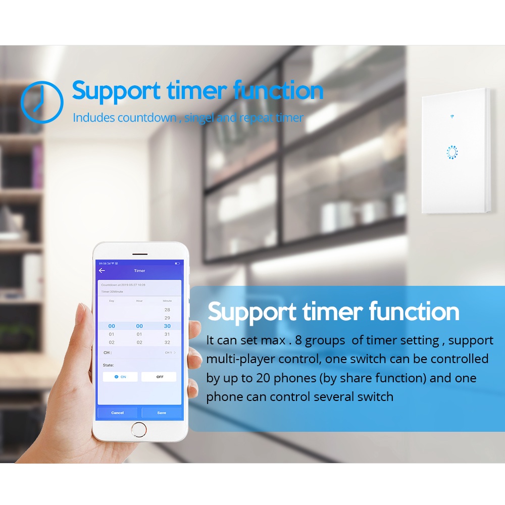 Tuya/Ewelink 1-2-3-4Gang 3 way Smart control touch wifi switch,wifi smart touch light switch works with Siri, alexa google