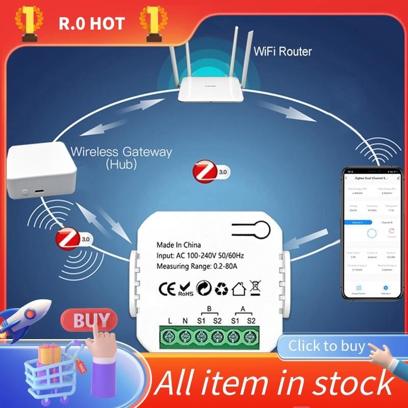 Tuya Smart ZigBee Energy Meter 2 Way Bidirectional with Current Sensor Clamp App Monitor Power 100-240VAC