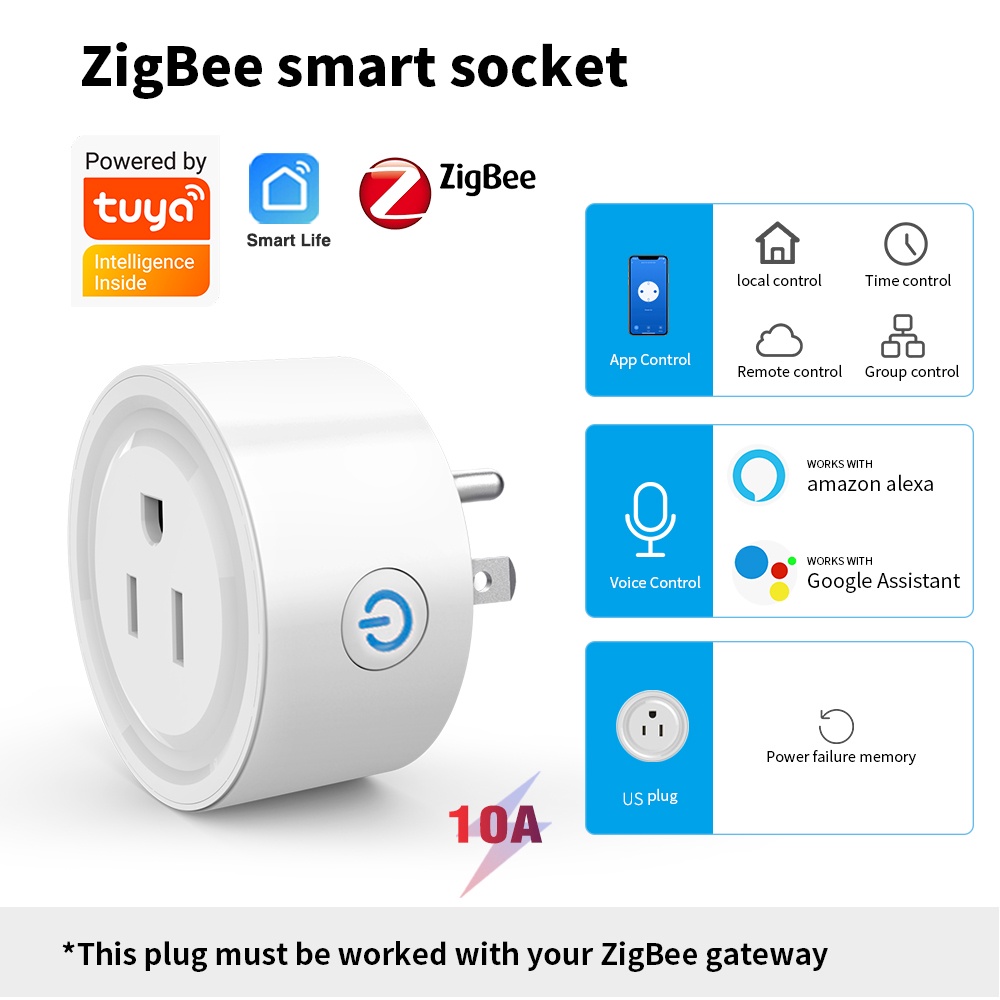 Tuya ZigBee Smart Socket US Smart Plug Timer Works With Smart Life APP Voice Alexa Google Home