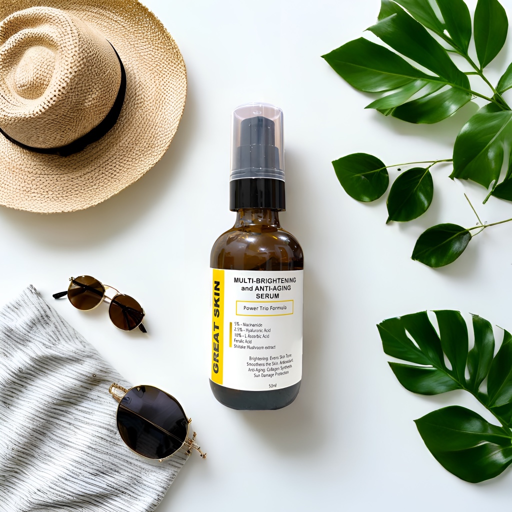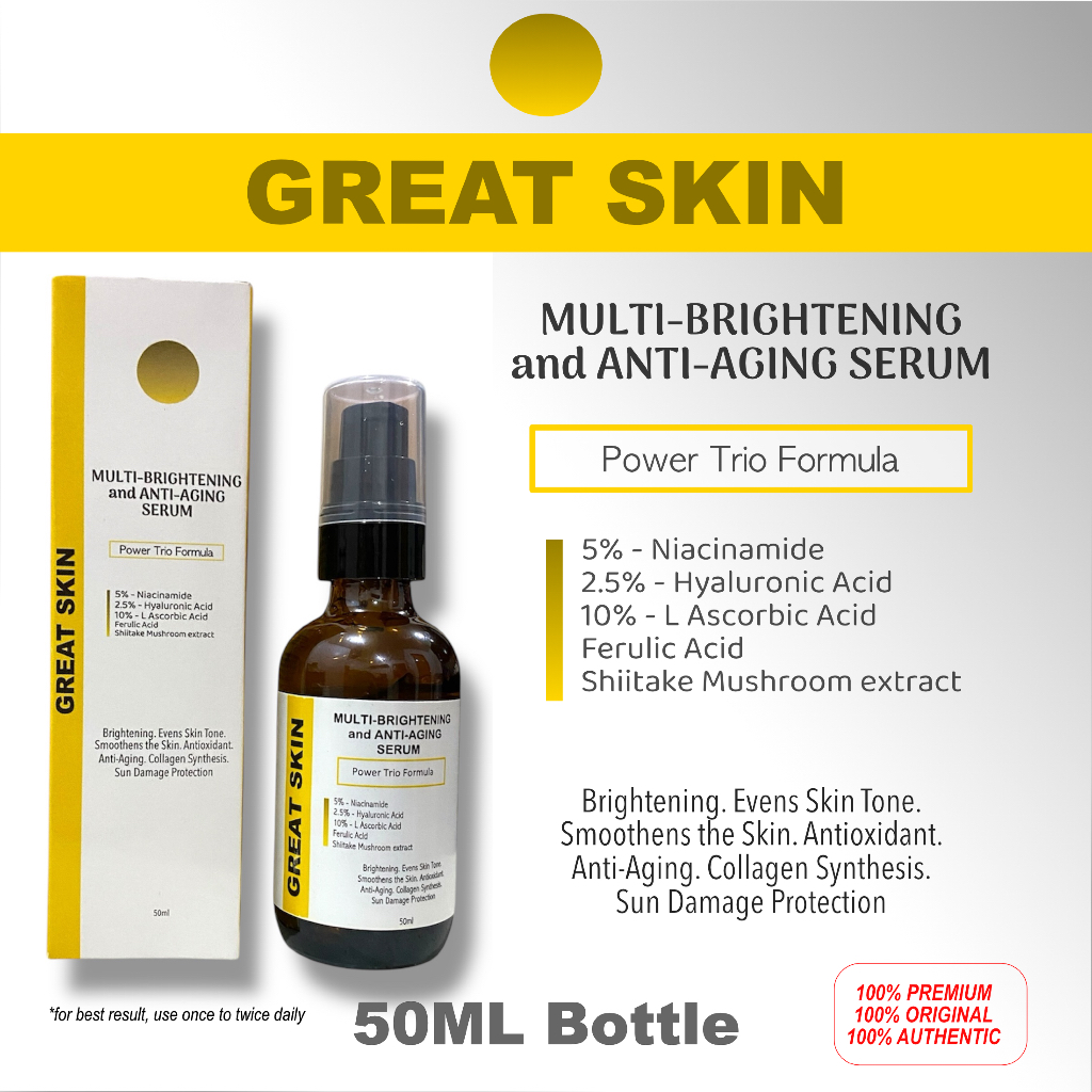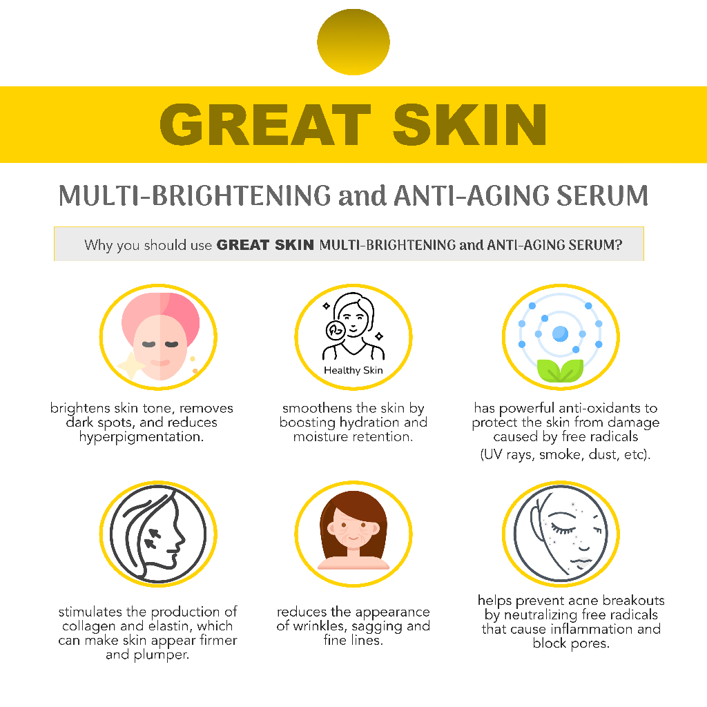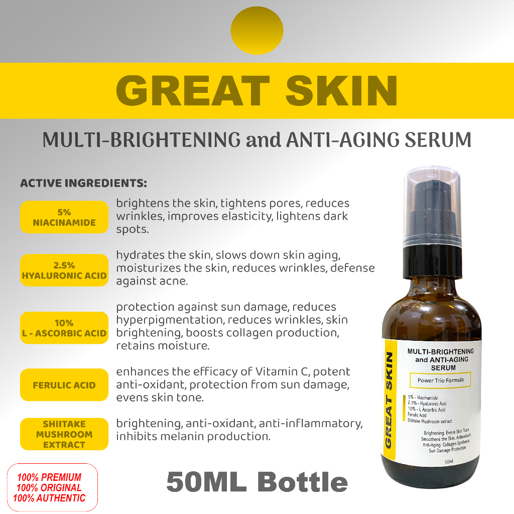 GREAT SKIN Multi-Brightening and Anti-Aging Serum 50ML Pump Bottle (the best in removing dark spots)