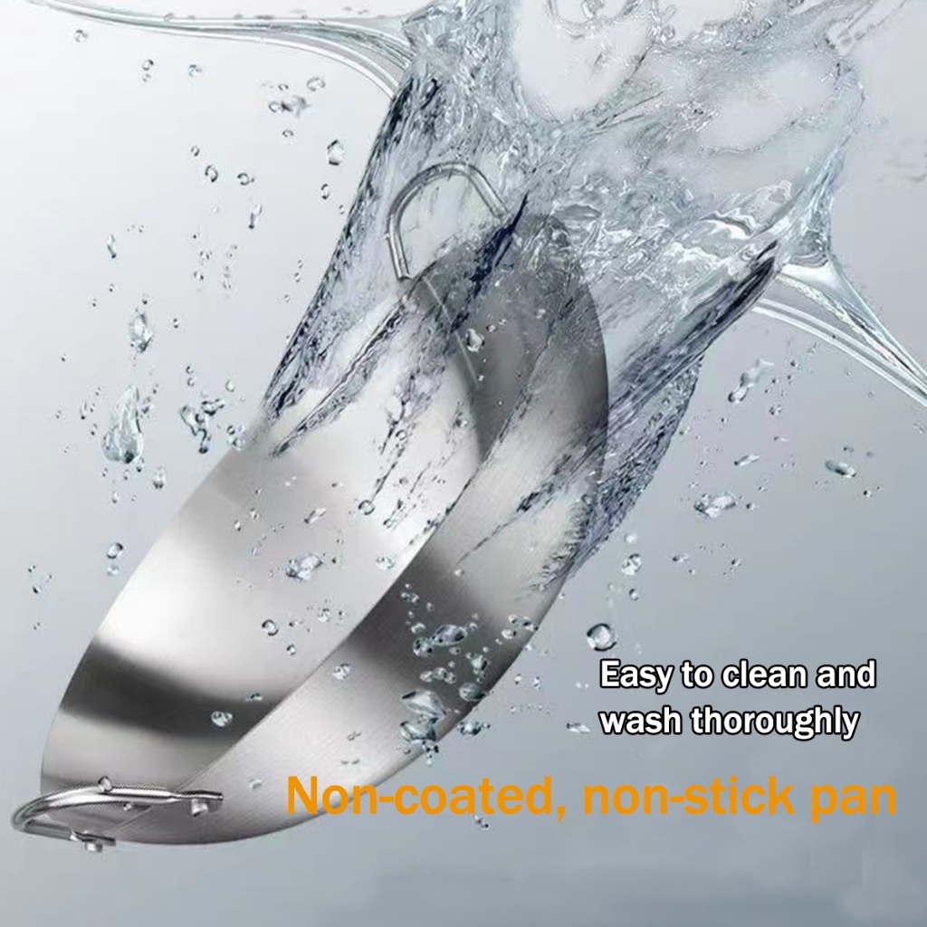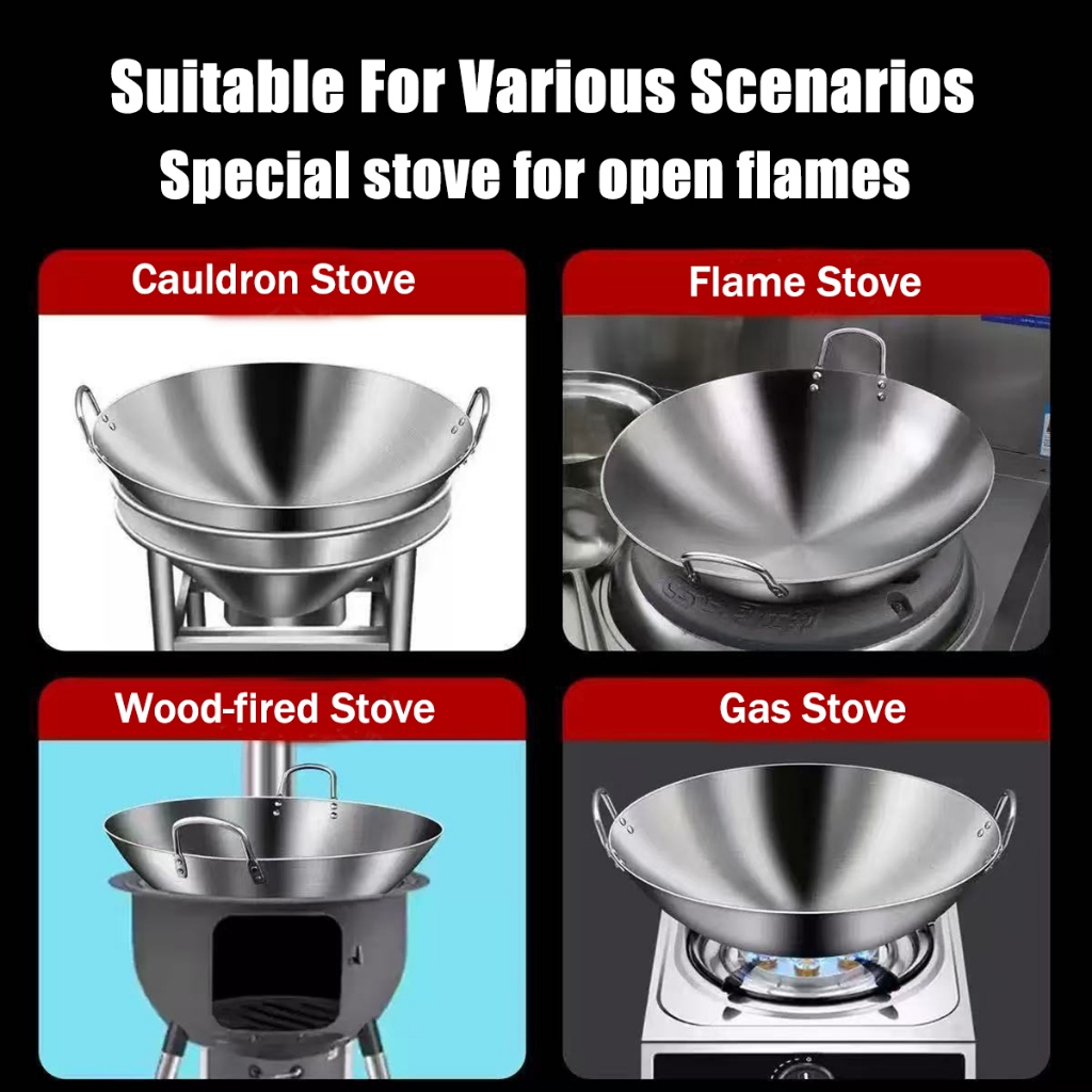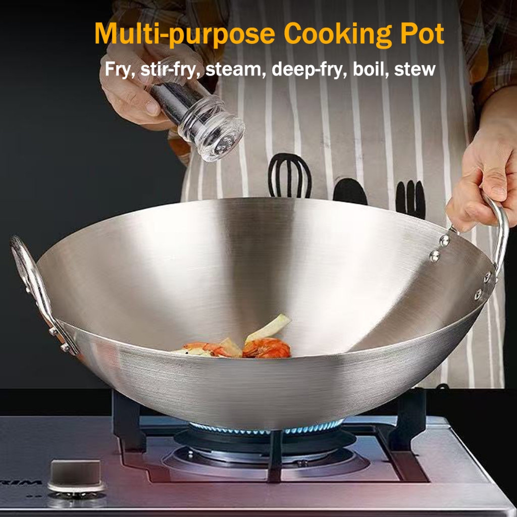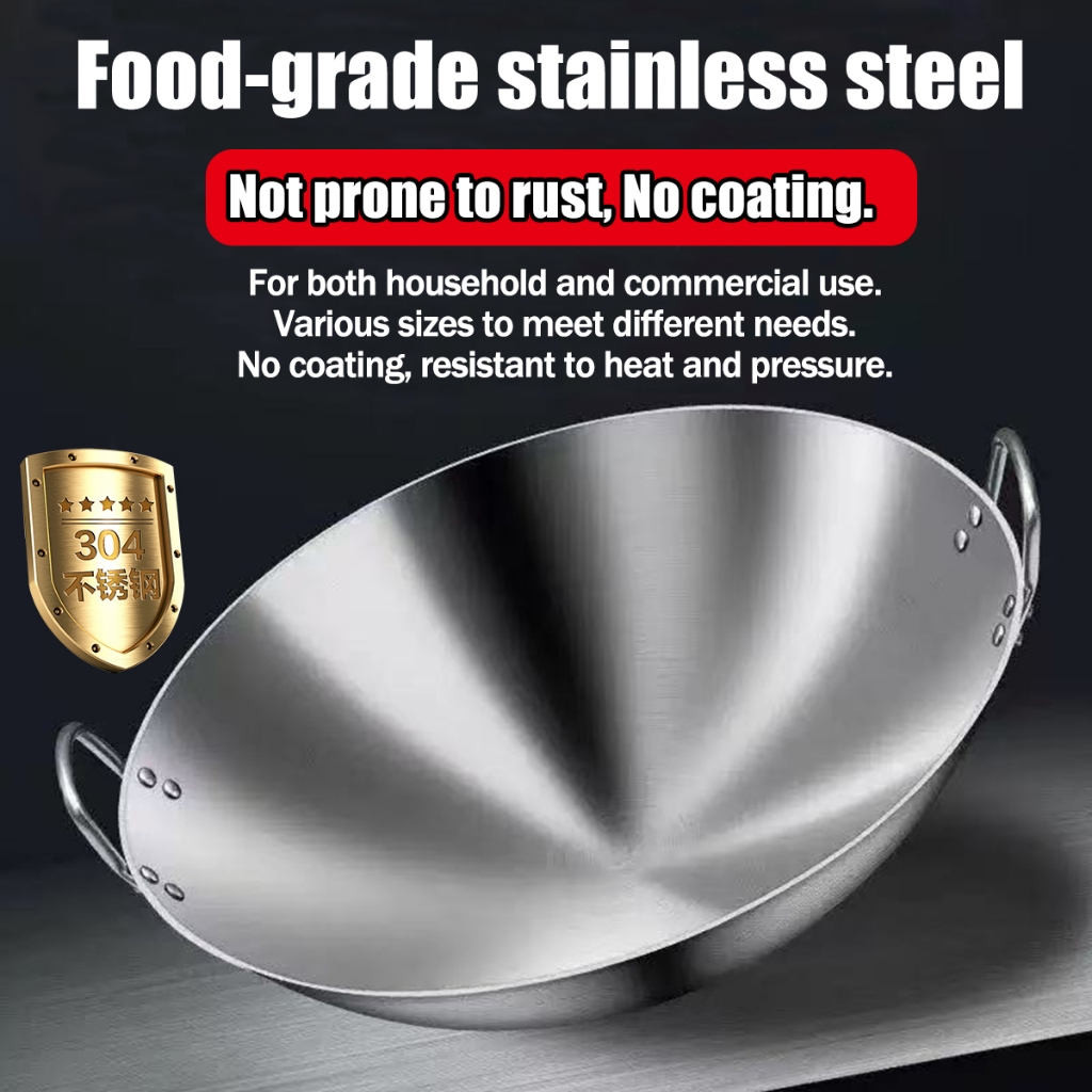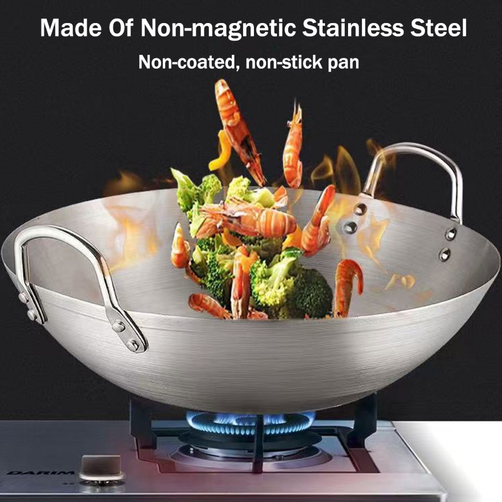 304 Talyasi Stainless Steel Wok With Double Handles Hotel Restaurant Frying Pan Wok Cookware Non-stick Pan