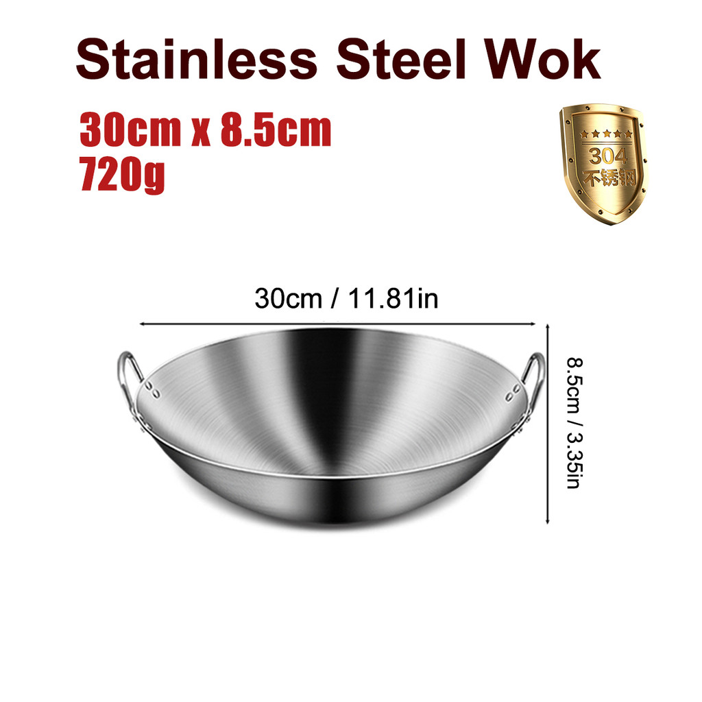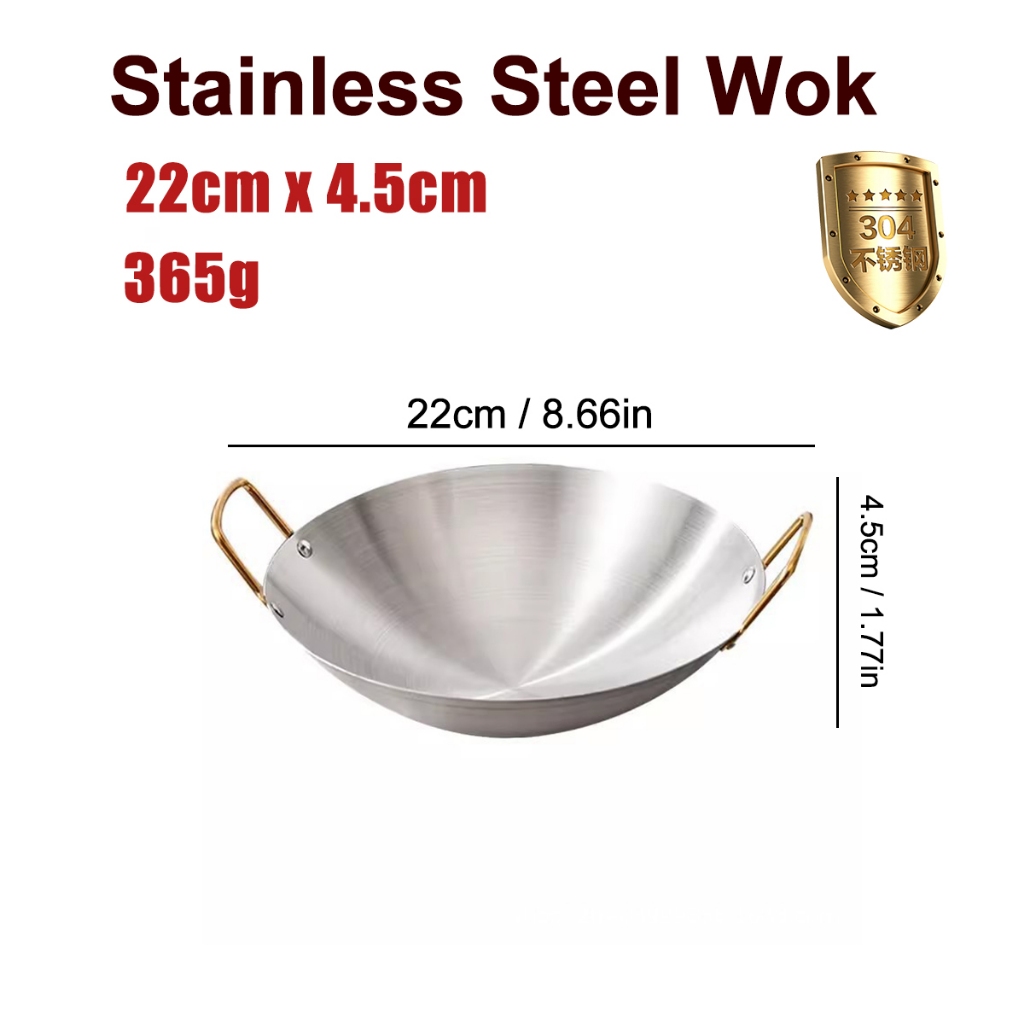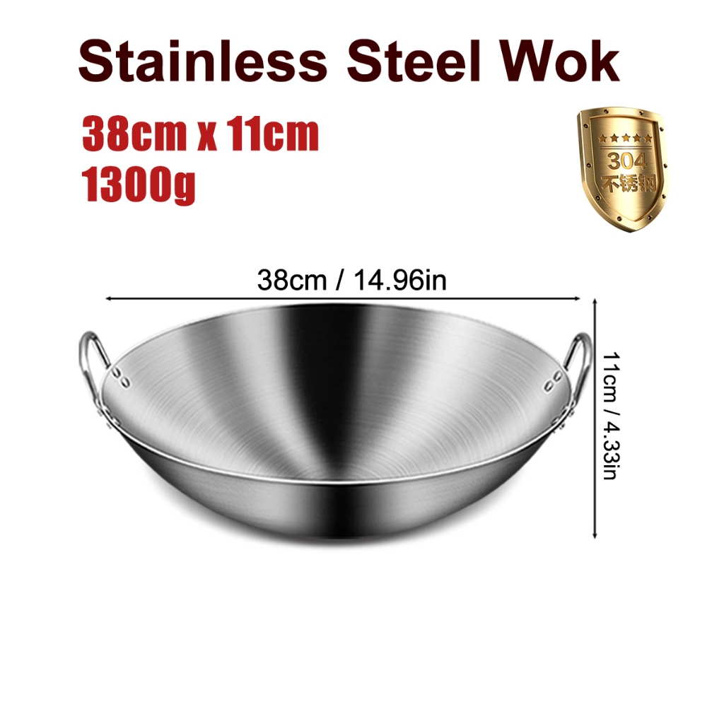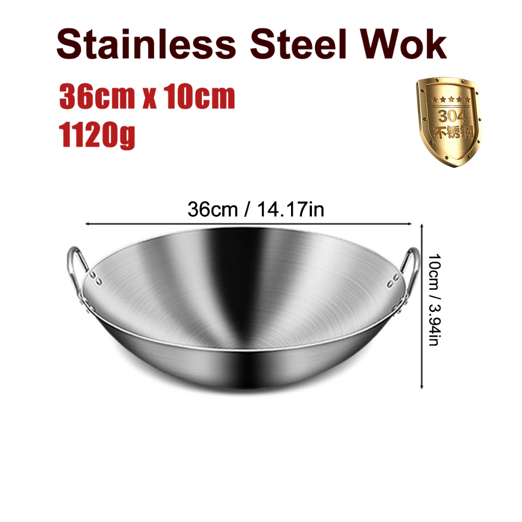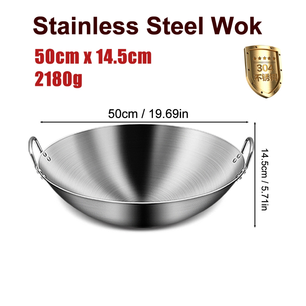 304 Talyasi Stainless Steel Wok With Double Handles Hotel Restaurant Frying Pan Wok Cookware Non-stick Pan