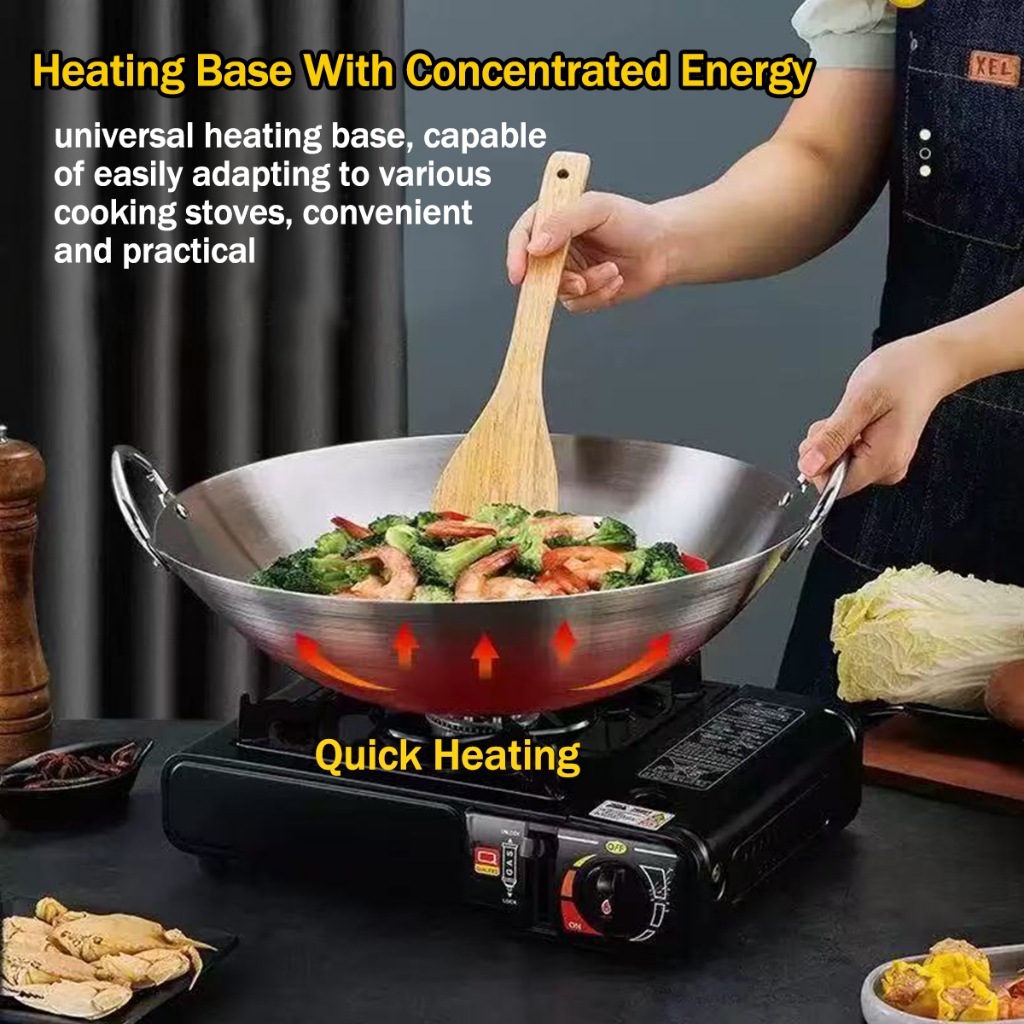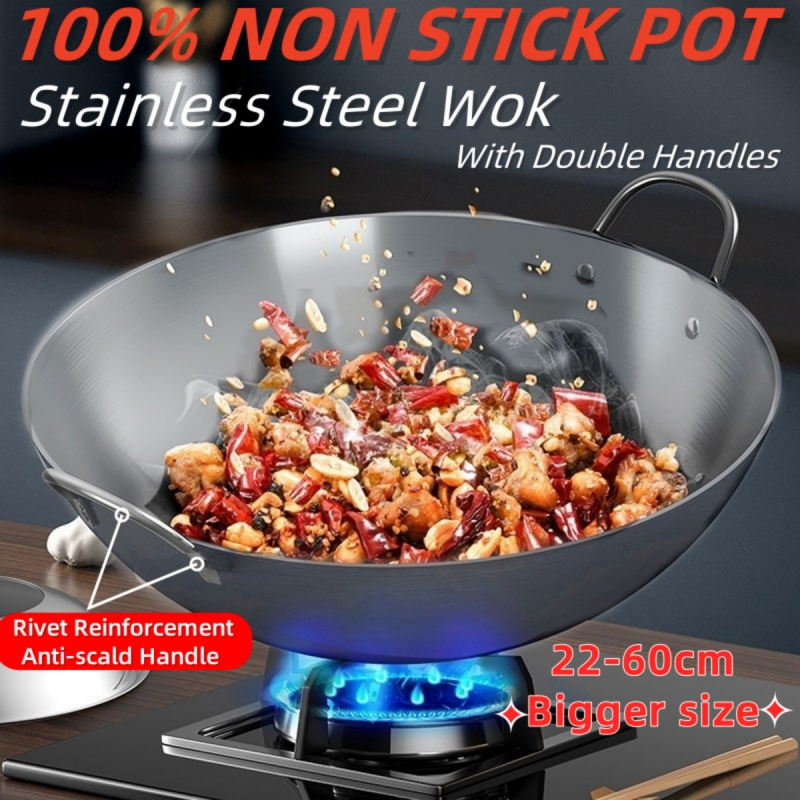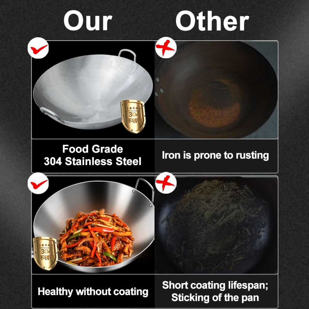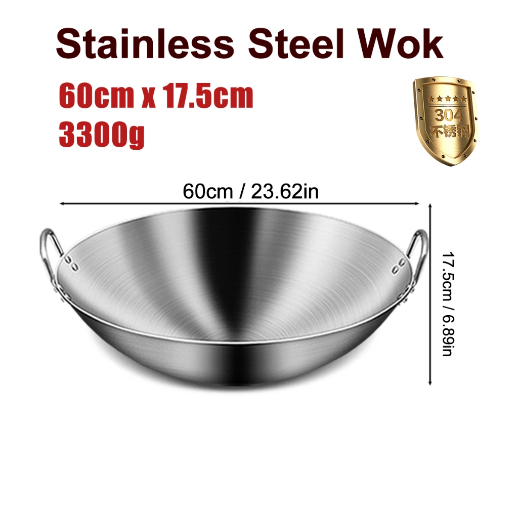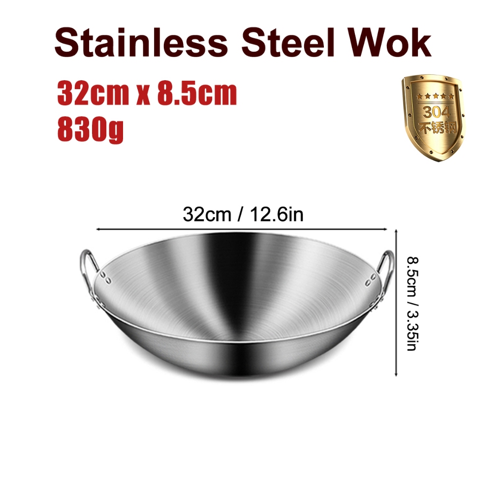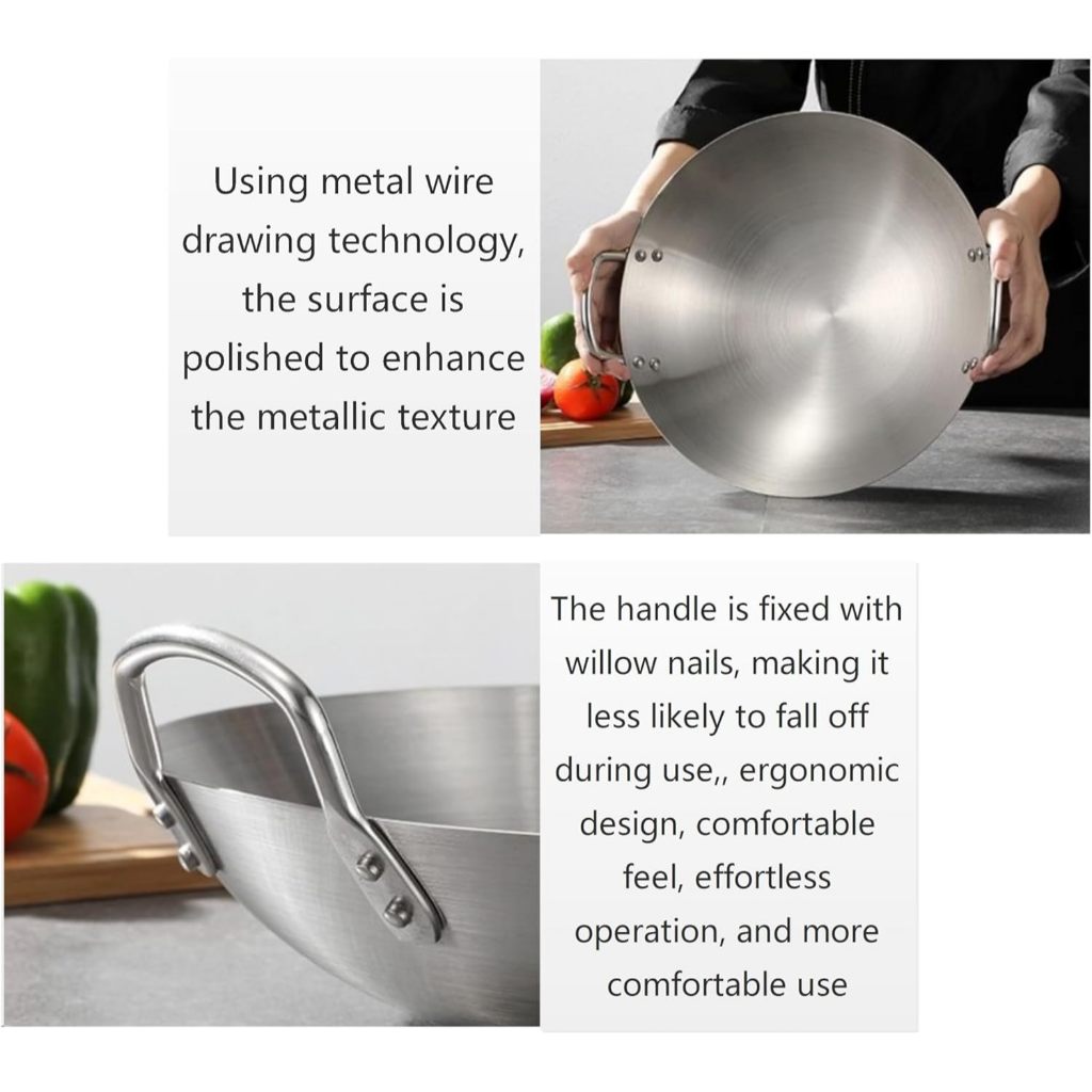 304 Talyasi Stainless Steel Wok With Double Handles Hotel Restaurant Frying Pan Wok Cookware Non-stick Pan