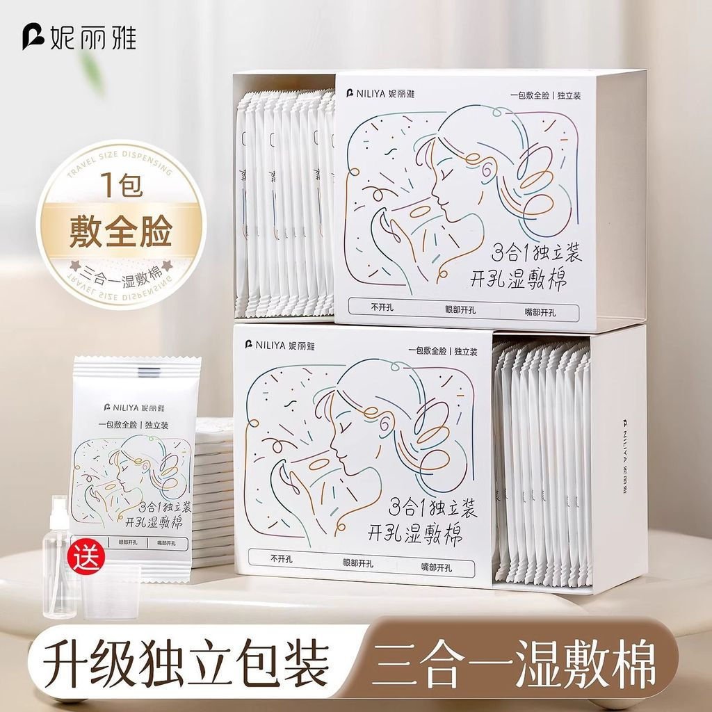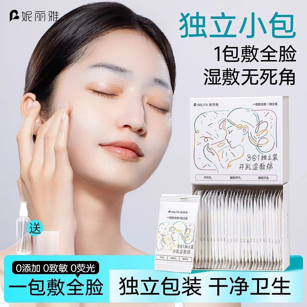 New Product#Independent Portable Wet Compress Cotton 3-in-1 Open Hole Stretchable Face Mask Special Beauty Hydrating Mask Open Makeup Cotton12Y