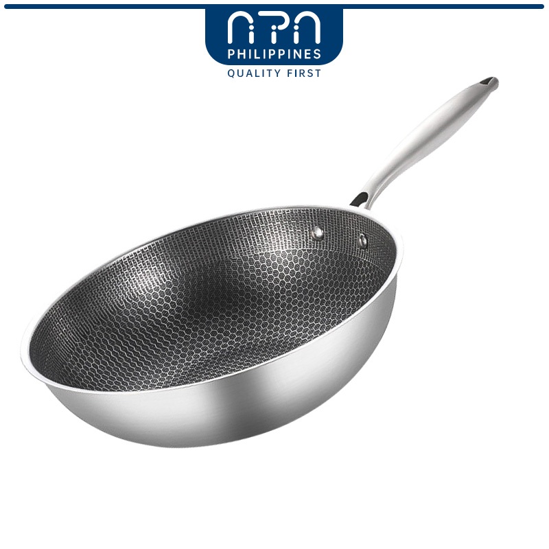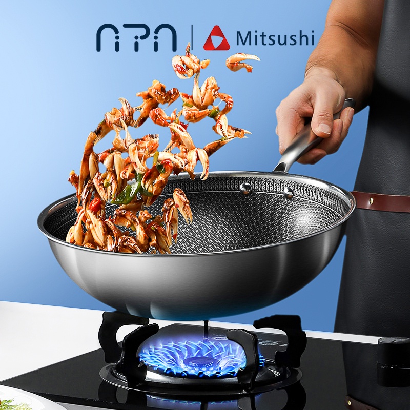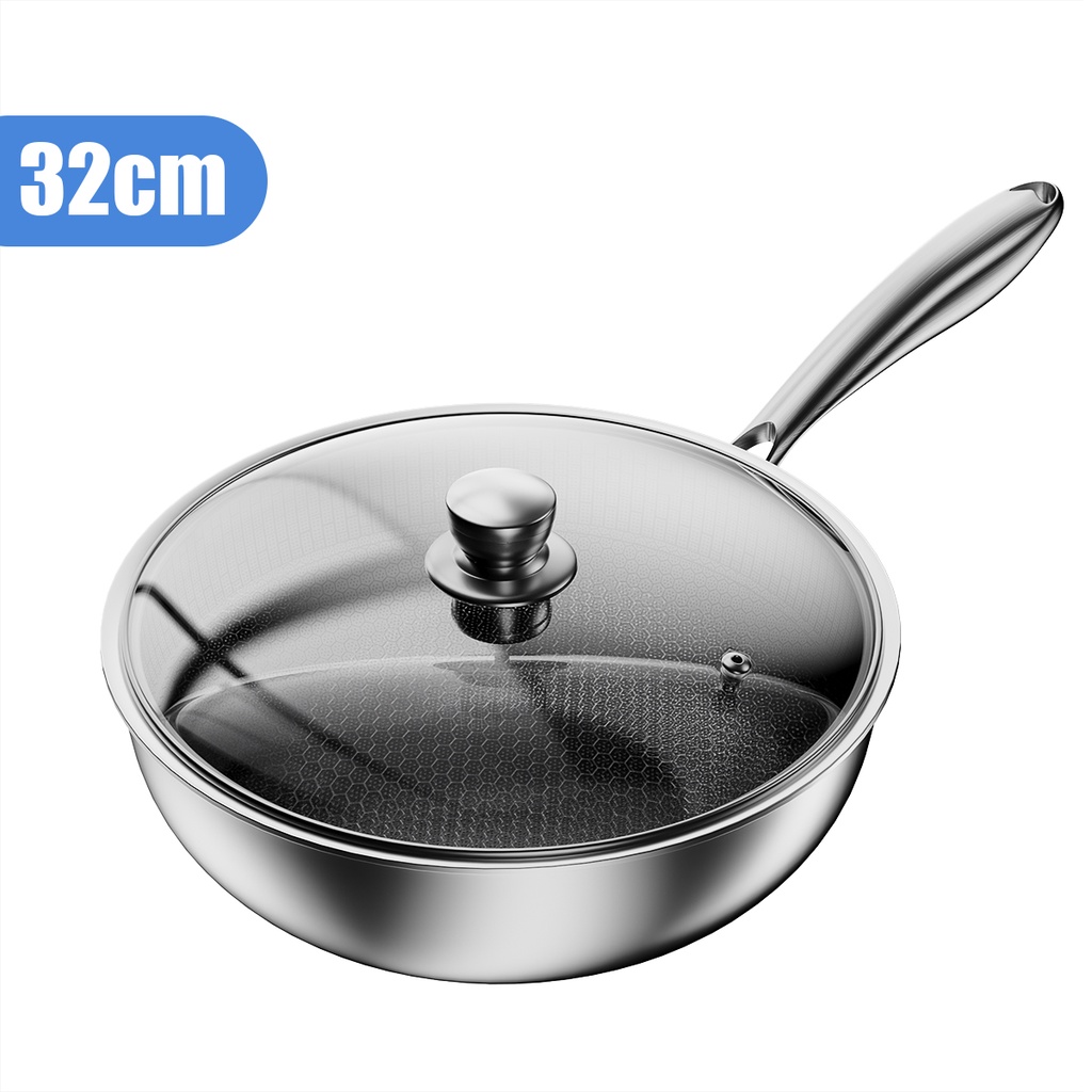 【New Arrival】Nipiin Pan Stainless Steel Wok Pan Non Stick Frying pot Induction Pan lid
