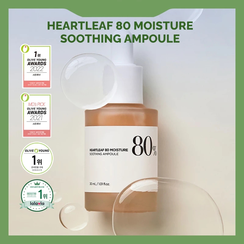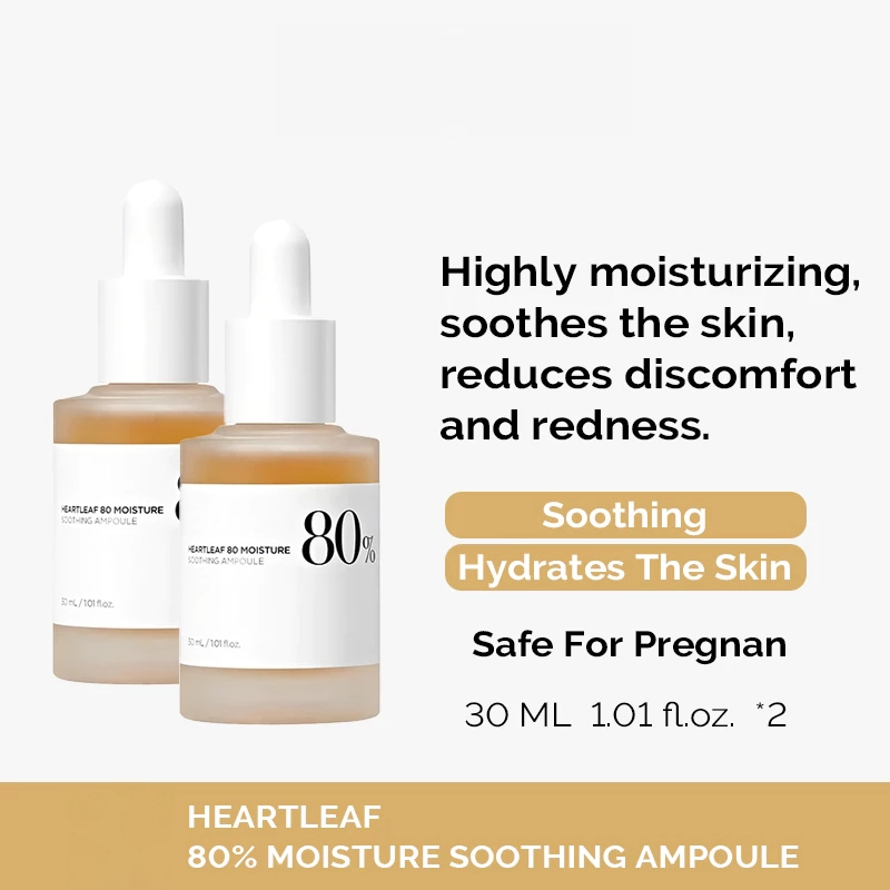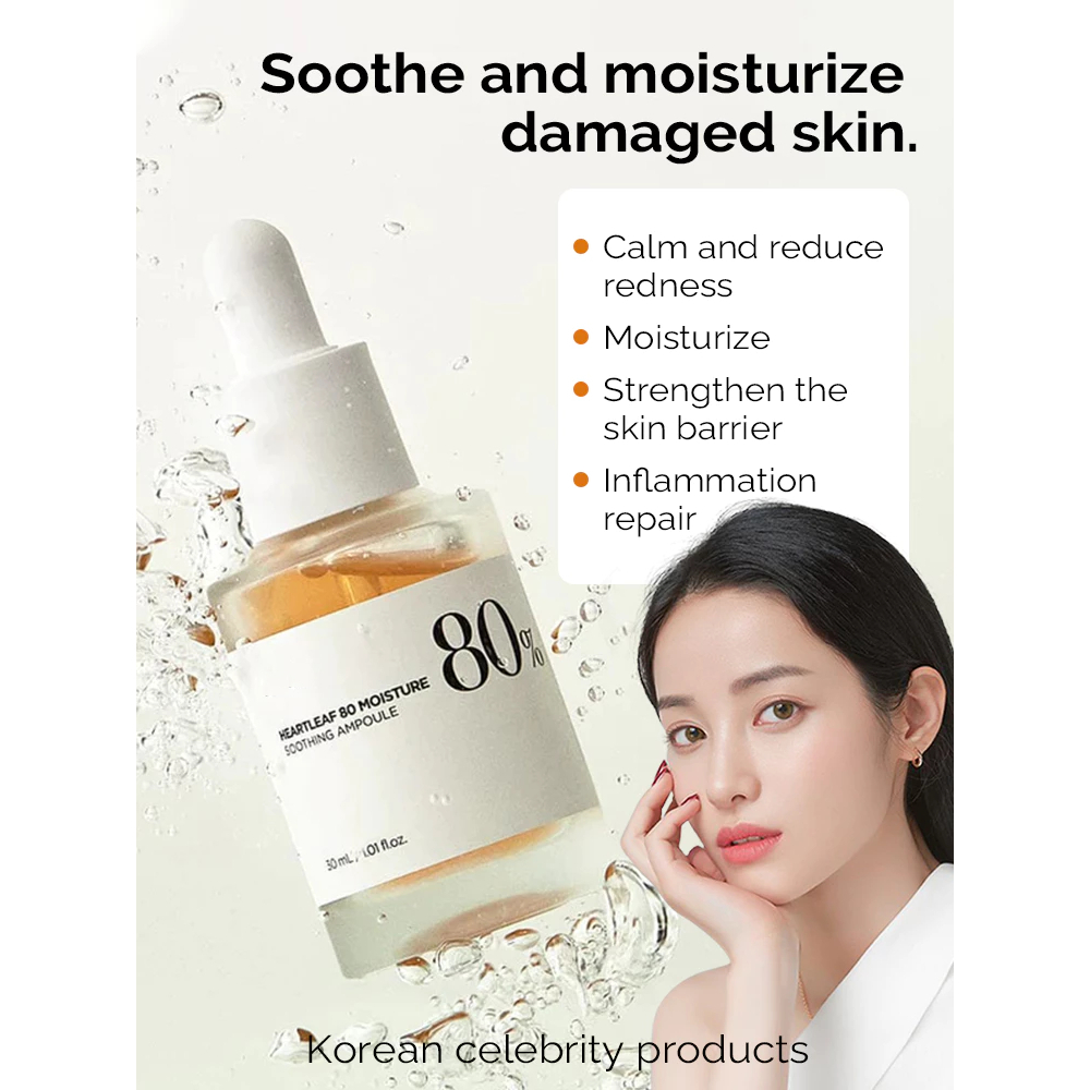 Heartleaf (Centella) 80% Moisture Soothing Ampoule Moisturizer For Dry Skin Sunburn Treatment