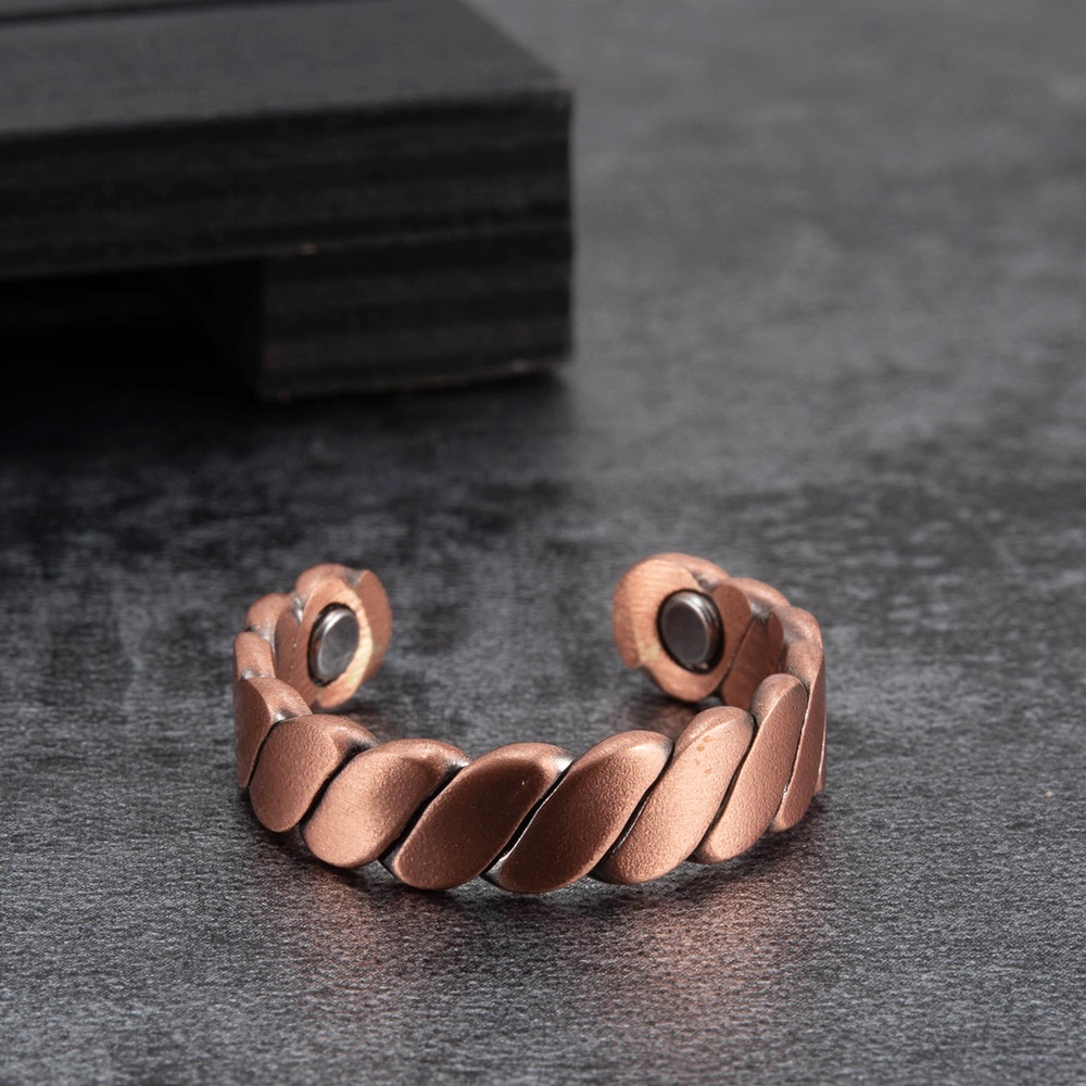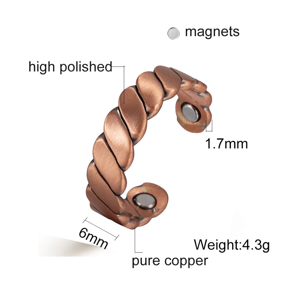 Twisted Adjustable Copper Rings Magnetic Therapy 6mm Wide Mens Ring Finger Pure Copper Cuff Ring for Men Arthritis Analgesics