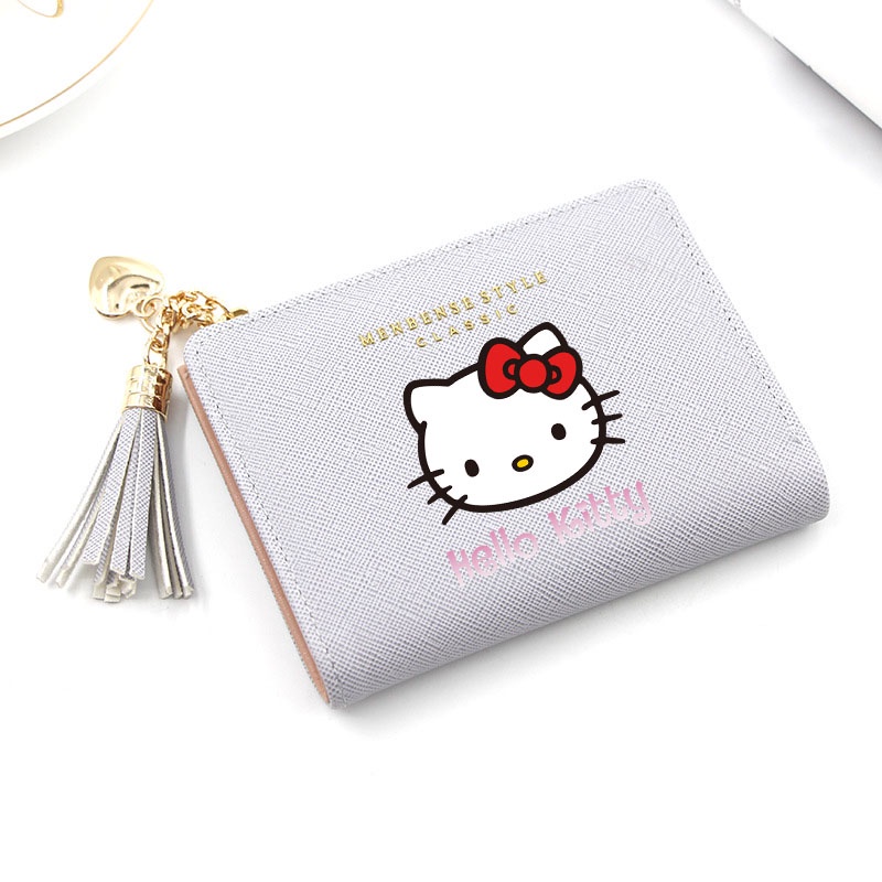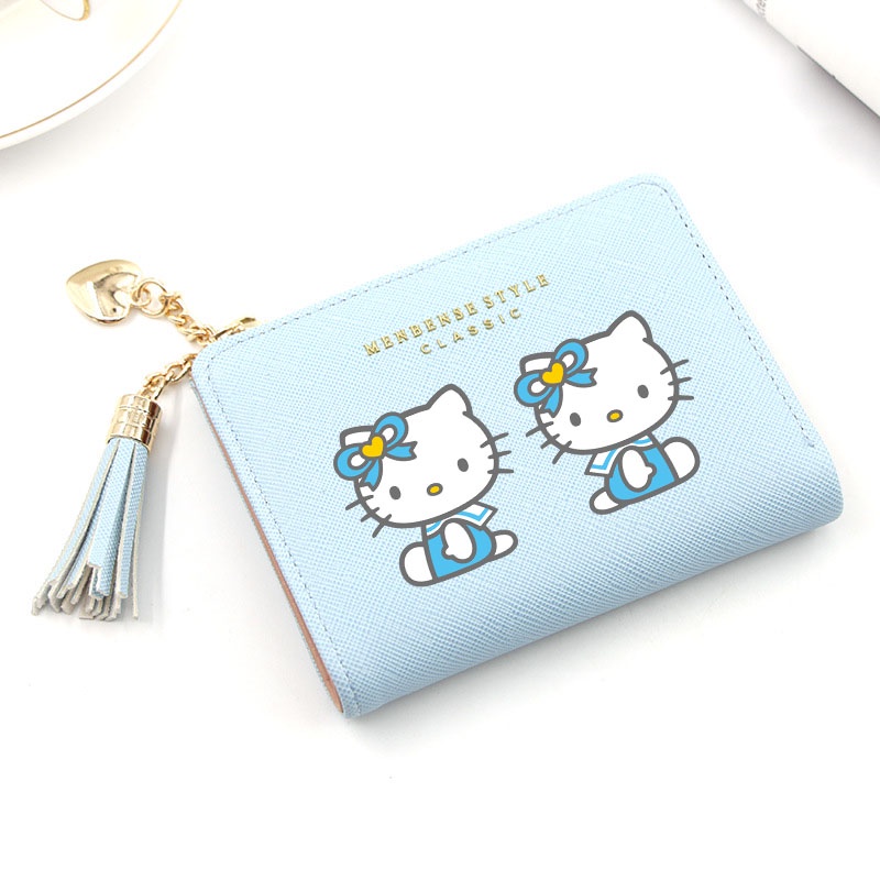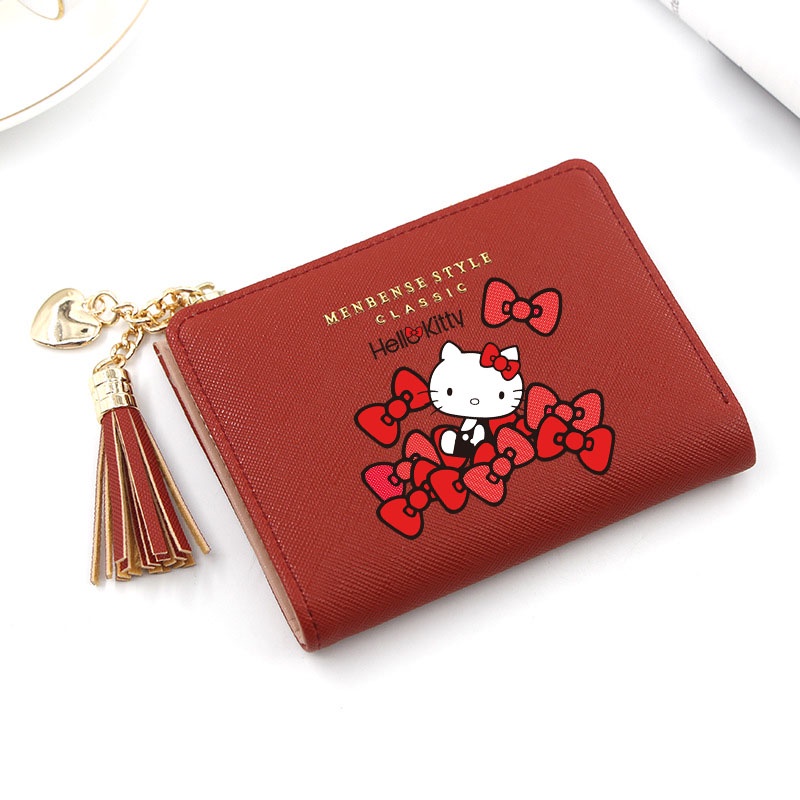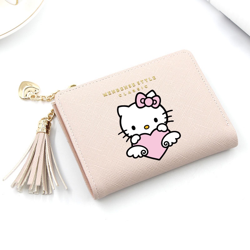 Two Fold Tassel Wallet Hello Kitty Wallet Fashion Cartoon Purse Short Wallet Women Wallet Coin Purse Card Holder