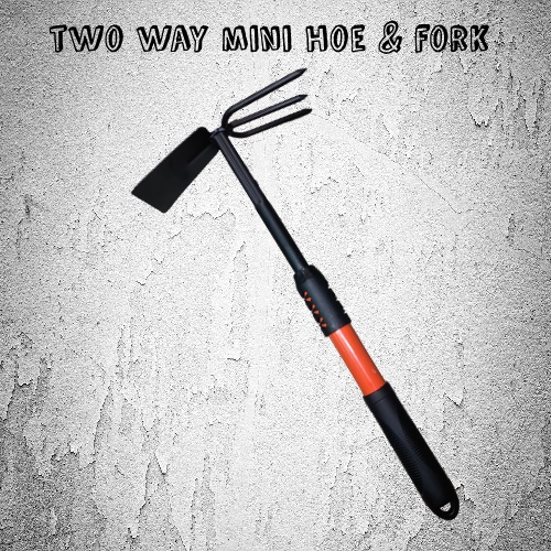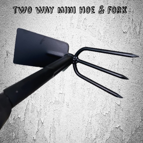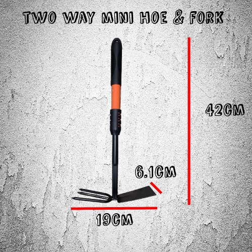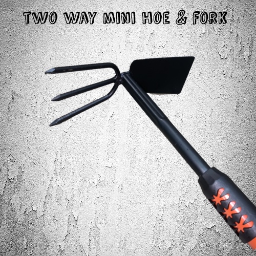 Two Way Mini Hoe And Fork with Metal handle Digger Home Garden Hand Tool Small Hoe Metal Handle Cangkul Mini ( Black)