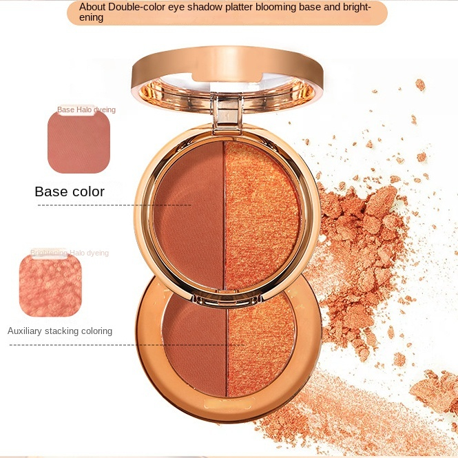 Two in one eye shadow plate waterproof sweat proof, and non smudging two-color eye shadow