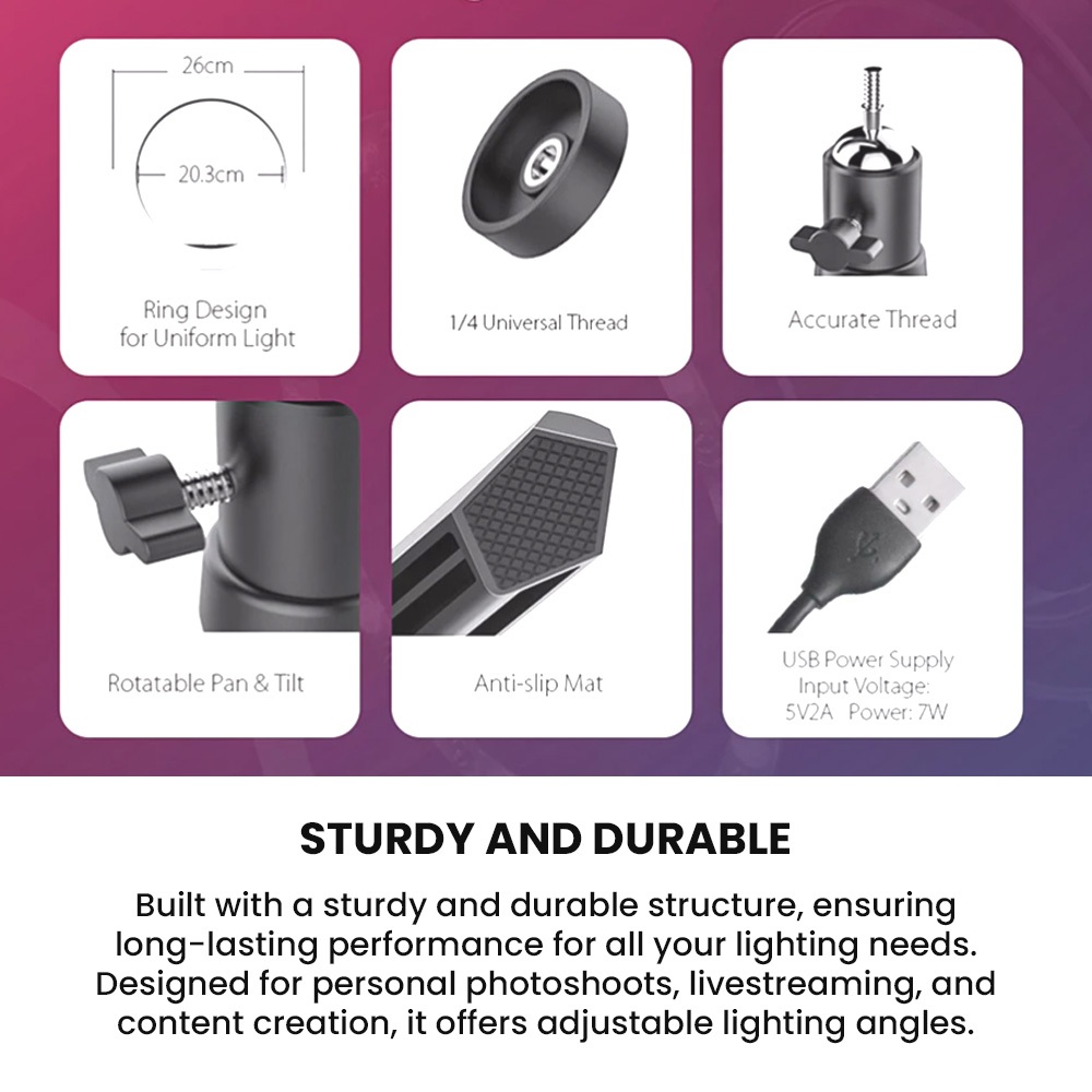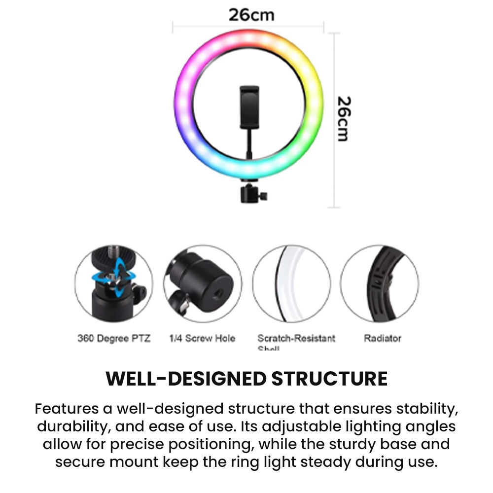 Tylex XD260 26CM Selfie RGB Ring Light w/ Mobile Holder Bracket Multi-Color Lighting With 7ft Tripod