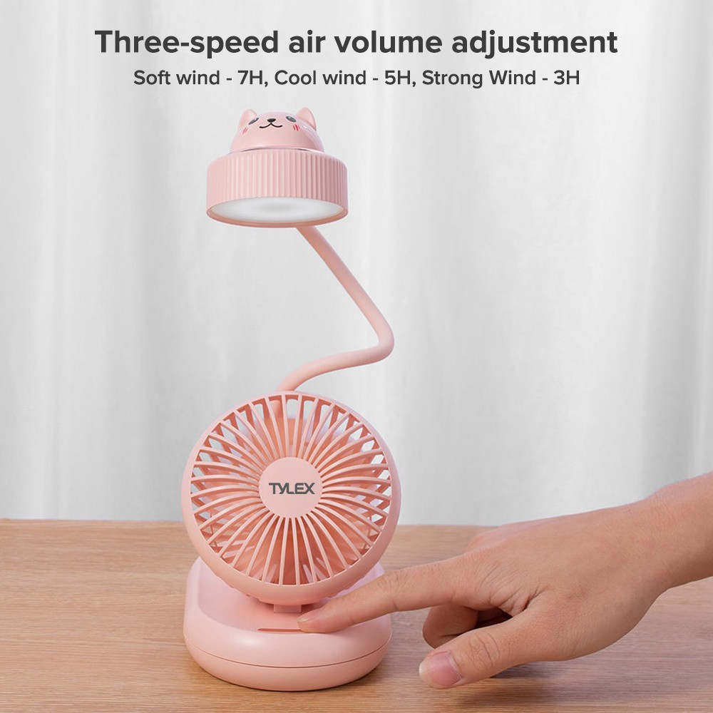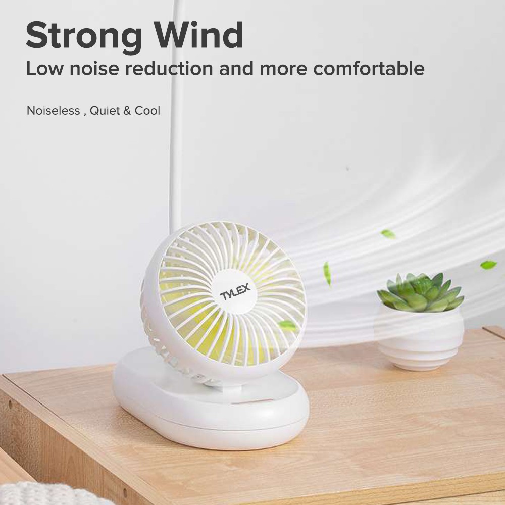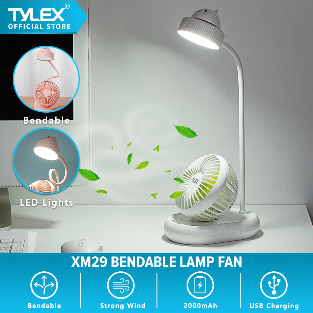 Tylex XM29 Portable Bendable Desk Lamp Fan Built-in 2000mAh Battery USB Rechargeable & Adjustable