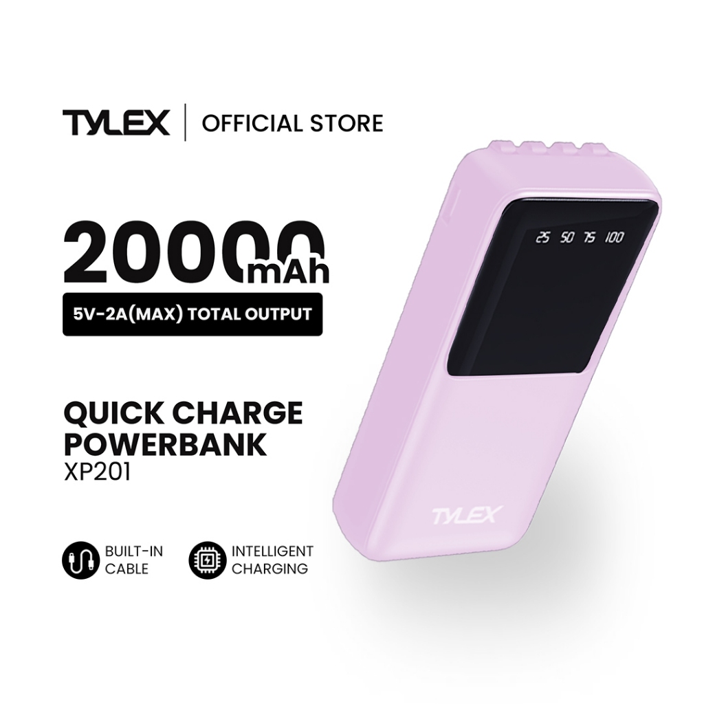 Tylex XP201 PowerBank 20000mAh Battery Capacity Built-In Cable Portable Boarding Intelligent Chargin