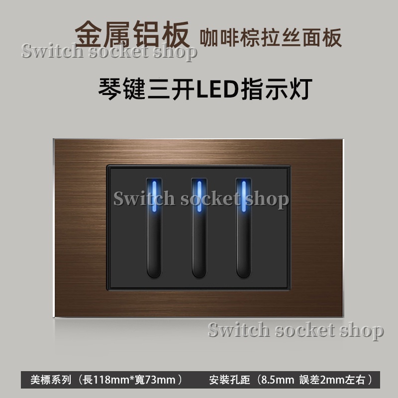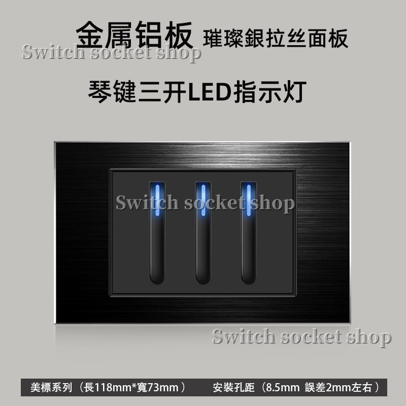 Type 118 local standards electric light aluminum metal brushed LED piano key switch