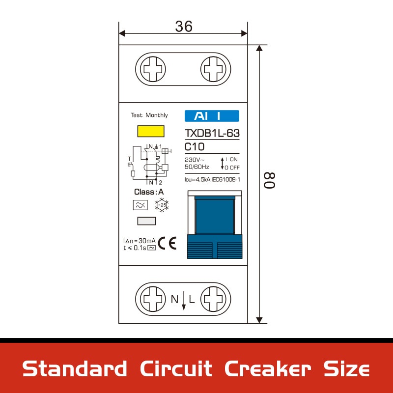 Type A AC CLASS Rcbo 110V 220V RCCB 10A 20a 40A 50A 63A 30mA Residual Current Circuit Breaker Leakage Protection