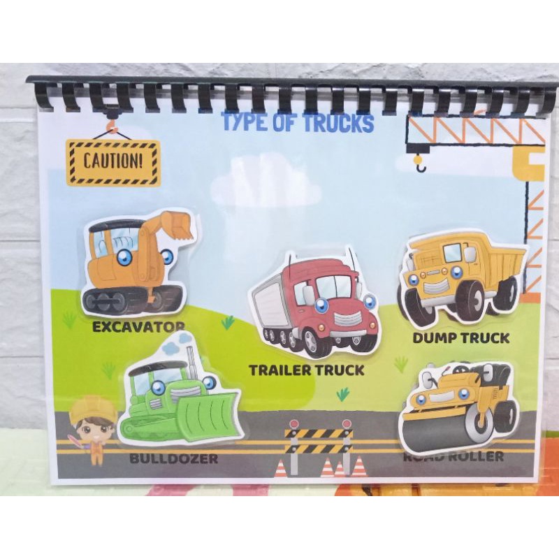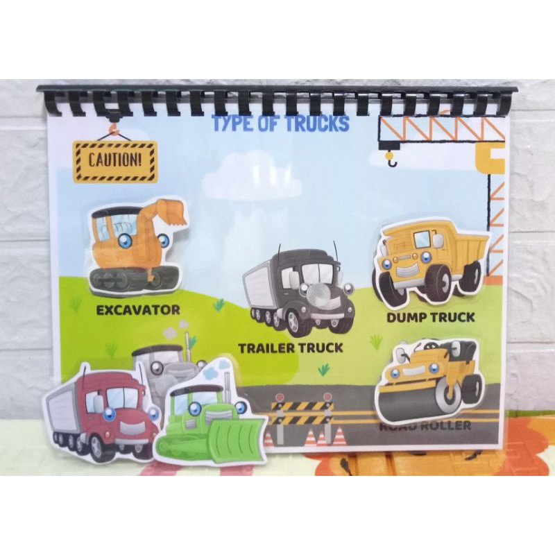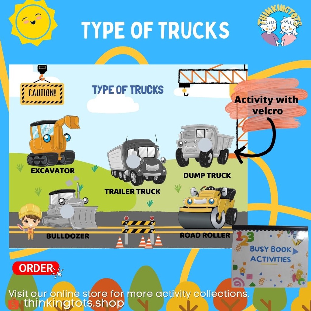 Type of Trucks Interactive Laminated with Velcro Kids Activities Binder Quite Busy Book Activities