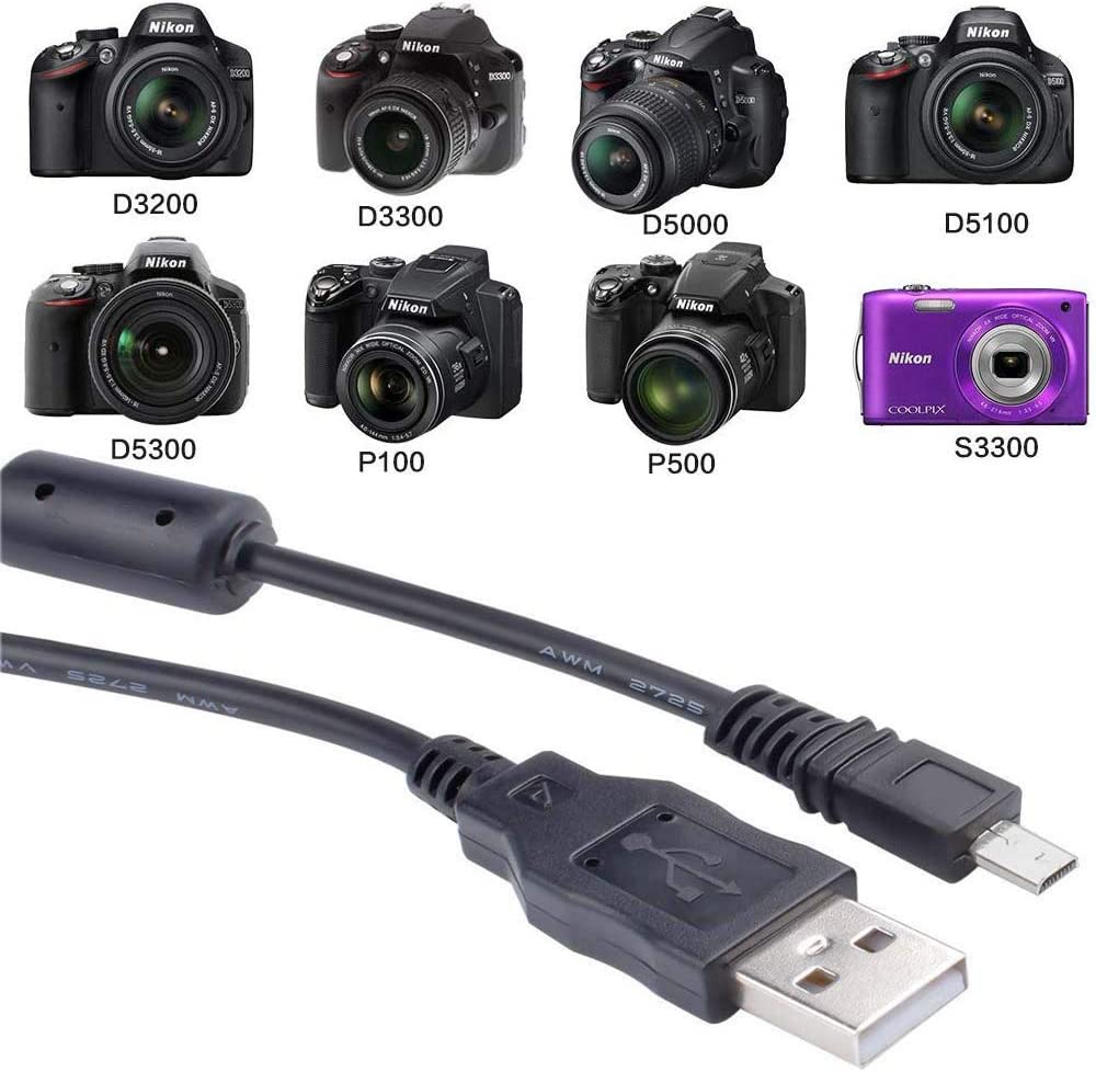 UC-E6 USB Data Cable Replacement Camera UC-E16 UC-E17 8 Pin Transfer Cord Compatible with Nikon Digital Camera SLR DSLR D3300 D750 D5300 D7200 D3200 Coolpix L340 L32 A10 P520 and More