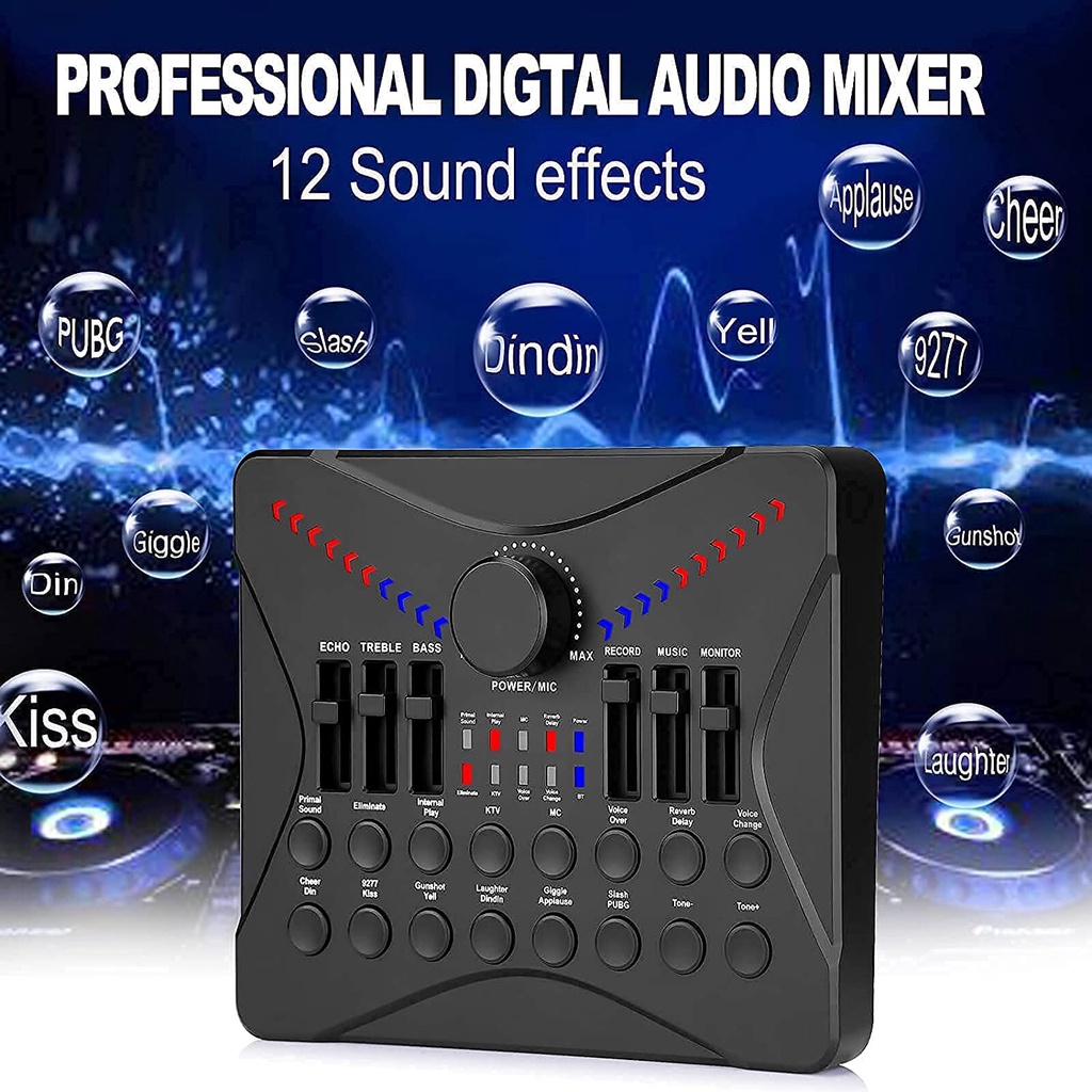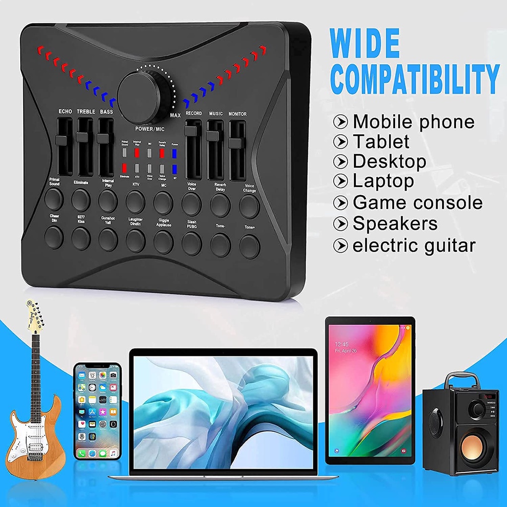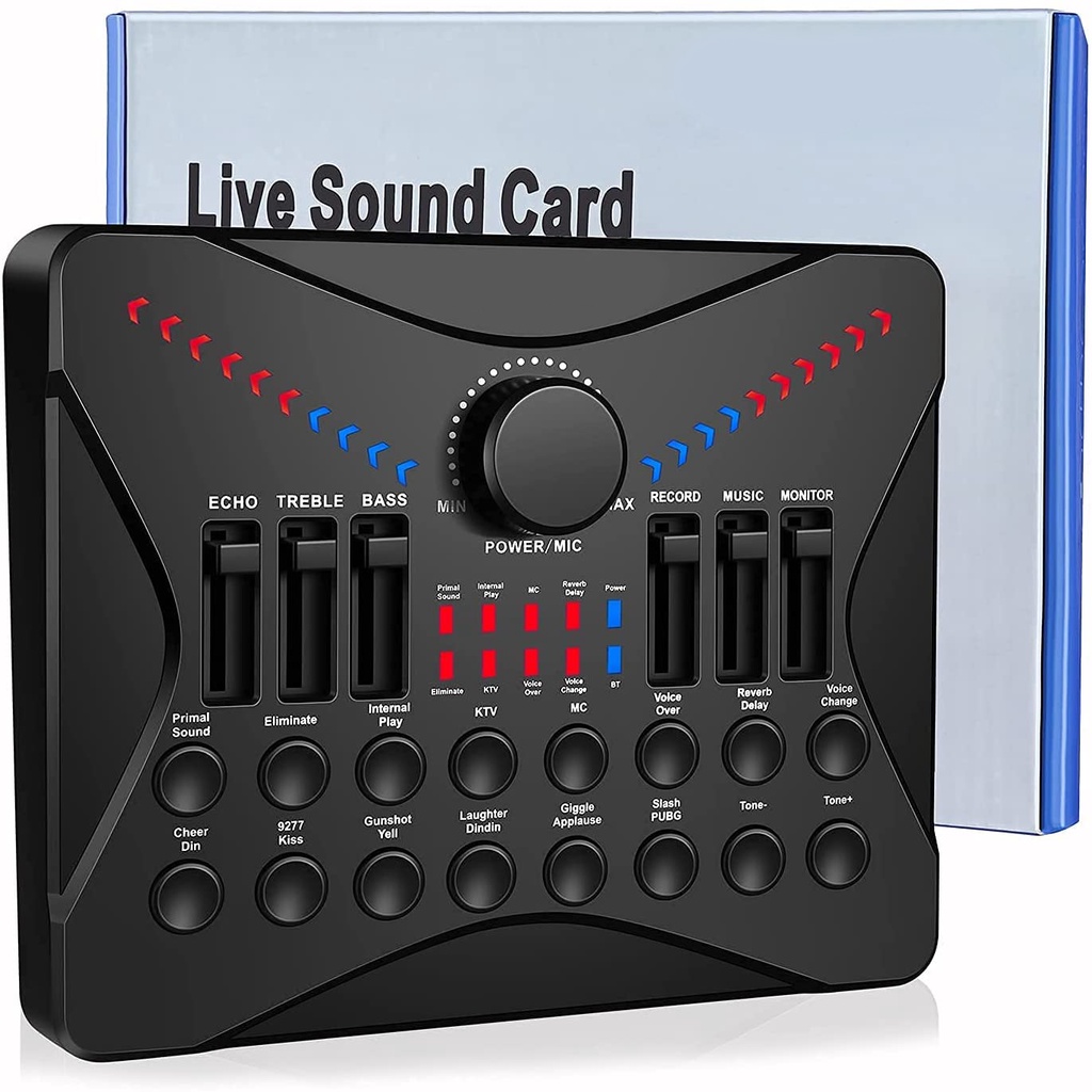 UC02 Live Sound Card Podcasting Mixer, Sound Card Bluetooth Sound Effects for Streaming PC Gaming