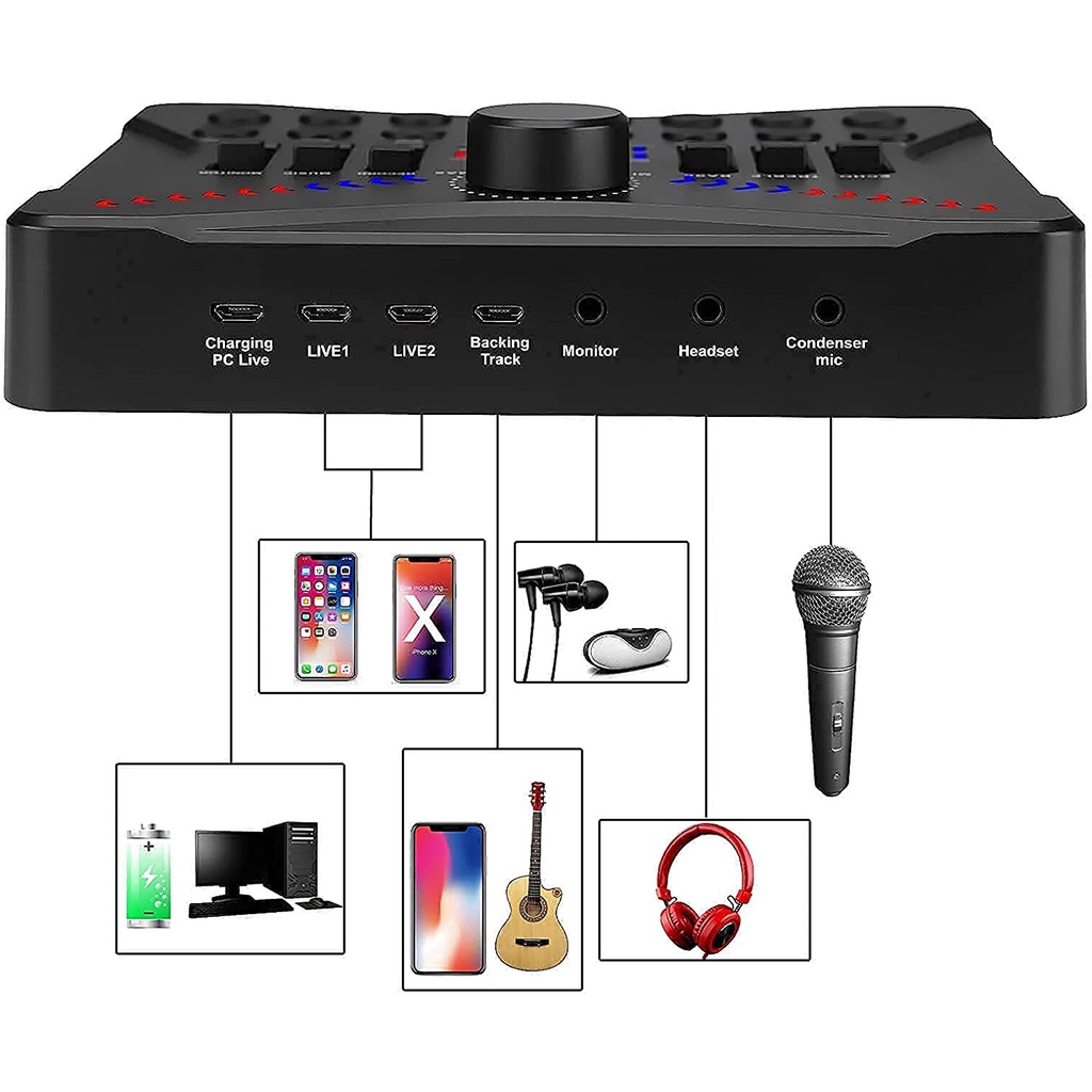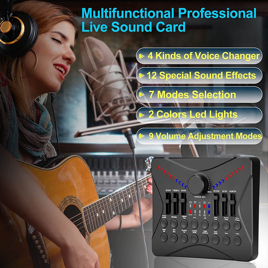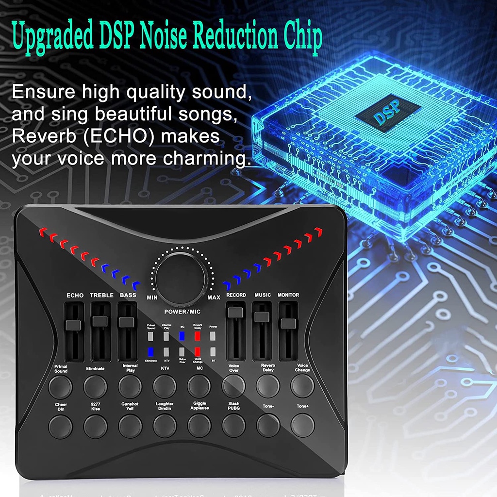 UC02 Live Sound Card Podcasting Mixer, Sound Card Bluetooth Sound Effects for Streaming PC Gaming