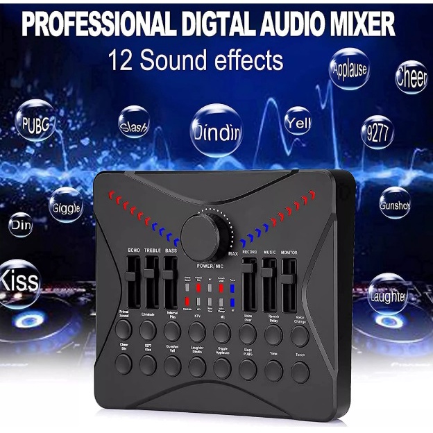 UC02 Live Sound Card Voice Changer for Podcasting Mixer, Sound Card Bluetooth Sound Effects for Str