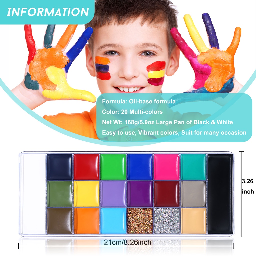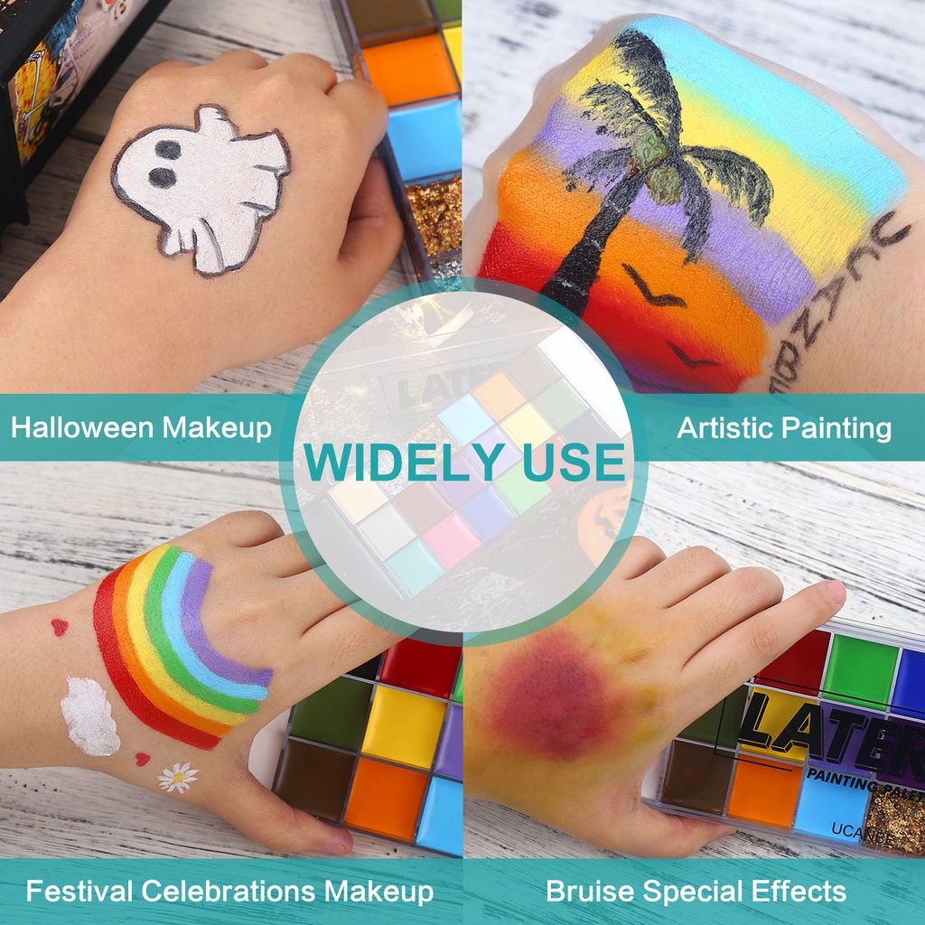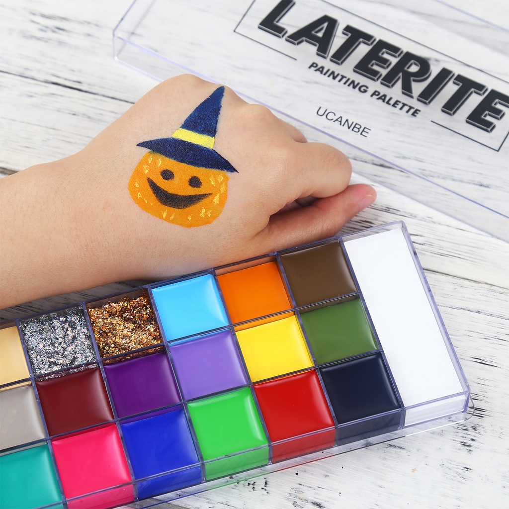 UCANBE Laterite Face & Body Paint Palette 20 Color for Halloween Cosplay Make Up Oil Based Painting for Adult Child Non Toxic