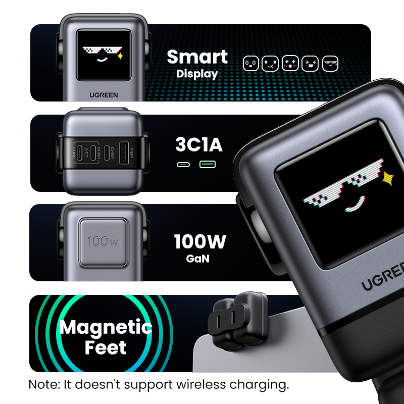 UGREEN 100W GaN Charger Robot Design Quick Charge 4.0 3.0 PPS PD Fast Charger for iPhone 16 14 13 Pro Macbook Laptop Tablet