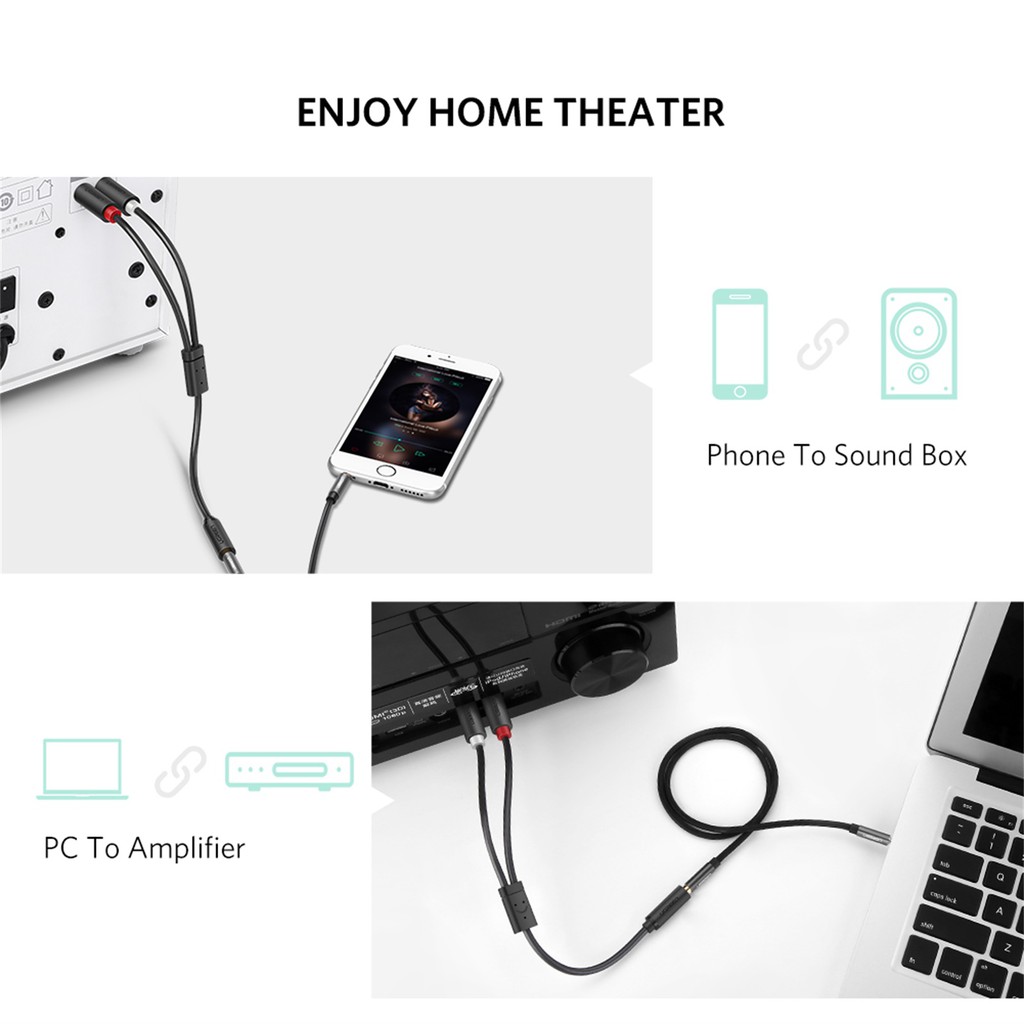 UGREEN 3.5mm Female to 2RCA Male Y Splitter Audio Cable for Home Theater DVD Pc 20cm