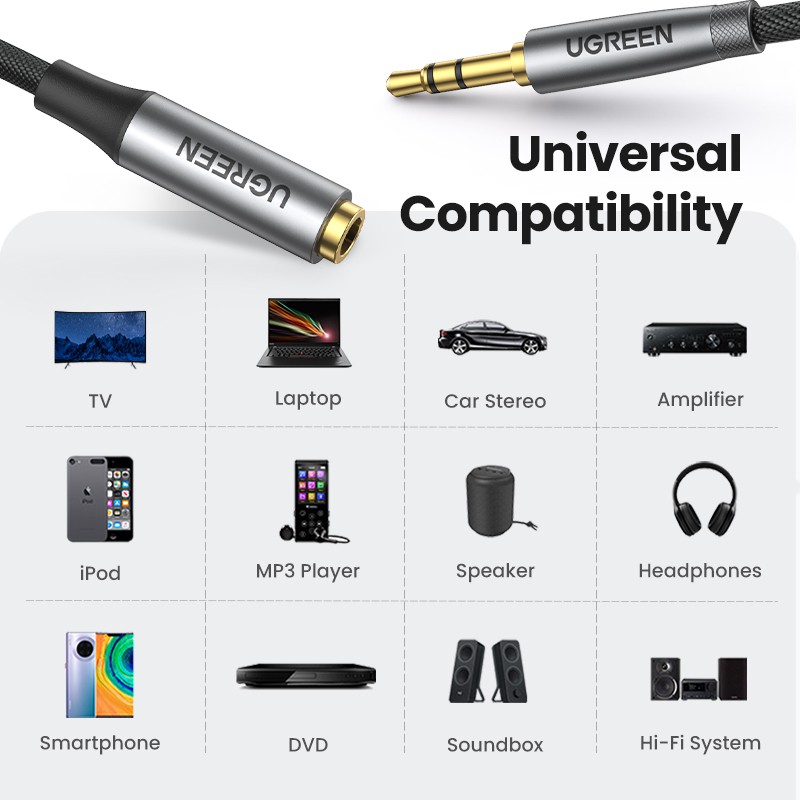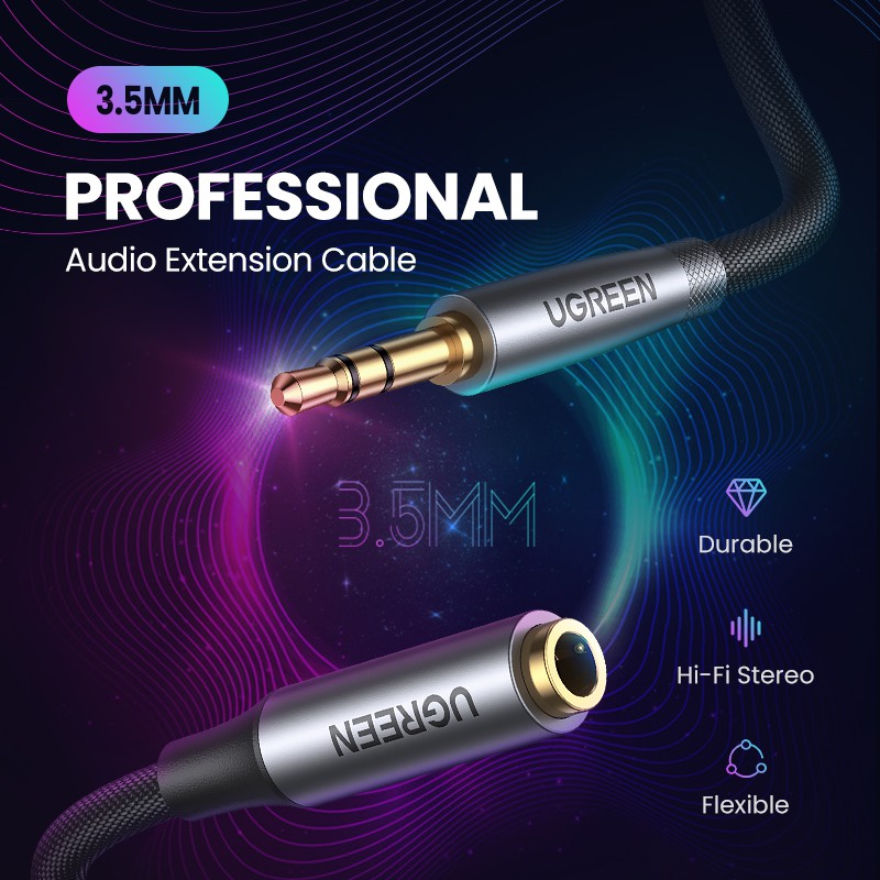UGREEN Audio Auxiliary Stereo Extension Audio Cable 3.5mm AUX Jack Male To Female Cord for Phones Headphones Speakers Tablets PC