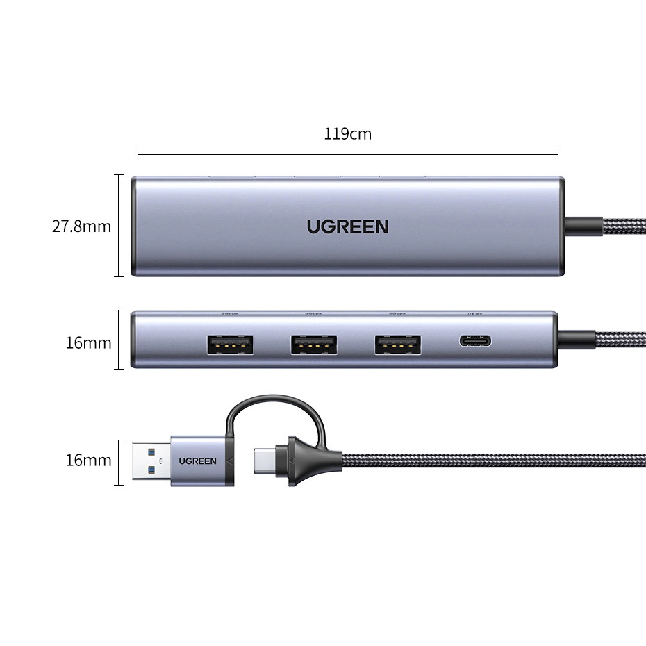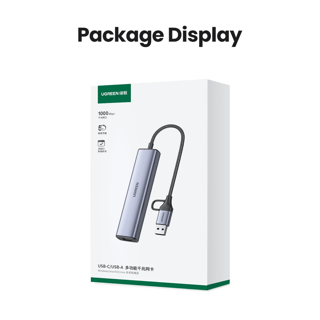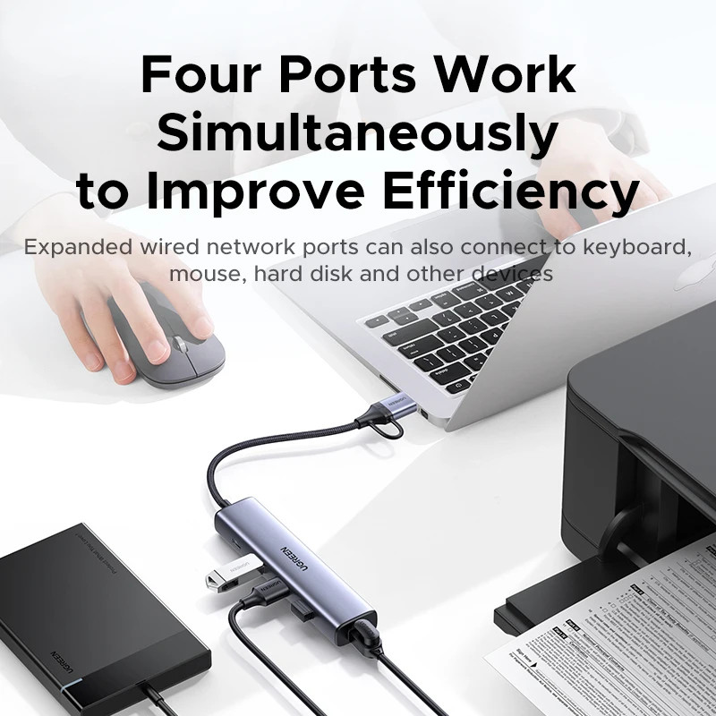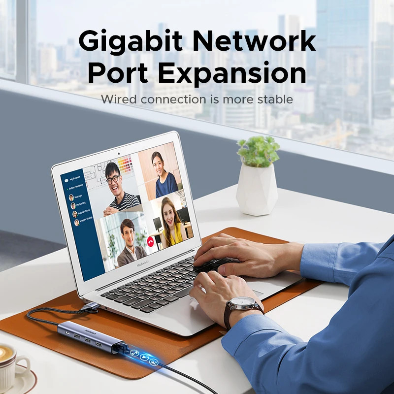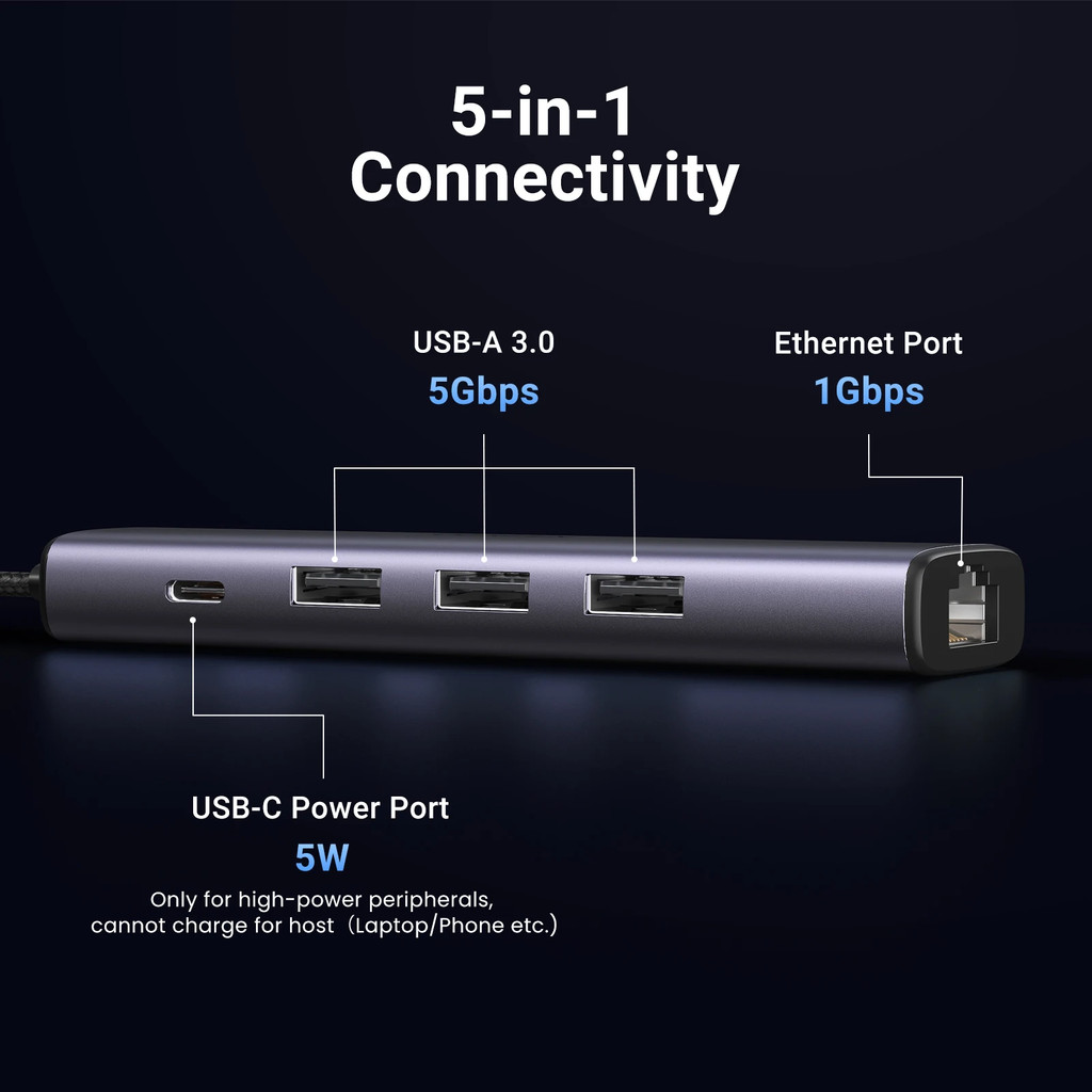 UGREEN Ethernet Adapter 5-in-1 Type-C to 1000Mbps RJ45 USB3.0 5Gbps Port USB-A Splitter for Laptop PC Windows USB Expander