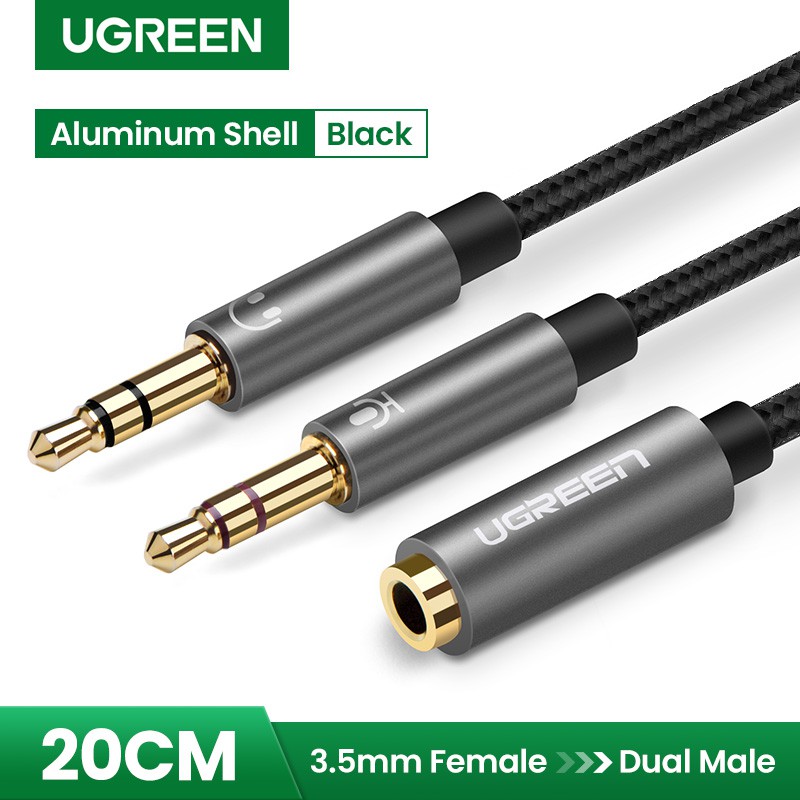 UGREEN Headphone Splitter for Computer 3.5mm Female to 2 Dual 3.5mm Male Braided Audio Splitter Cable Microphone Stereo Jack Earphones Port Cord Gaming Headset to PC Laptop Adapter