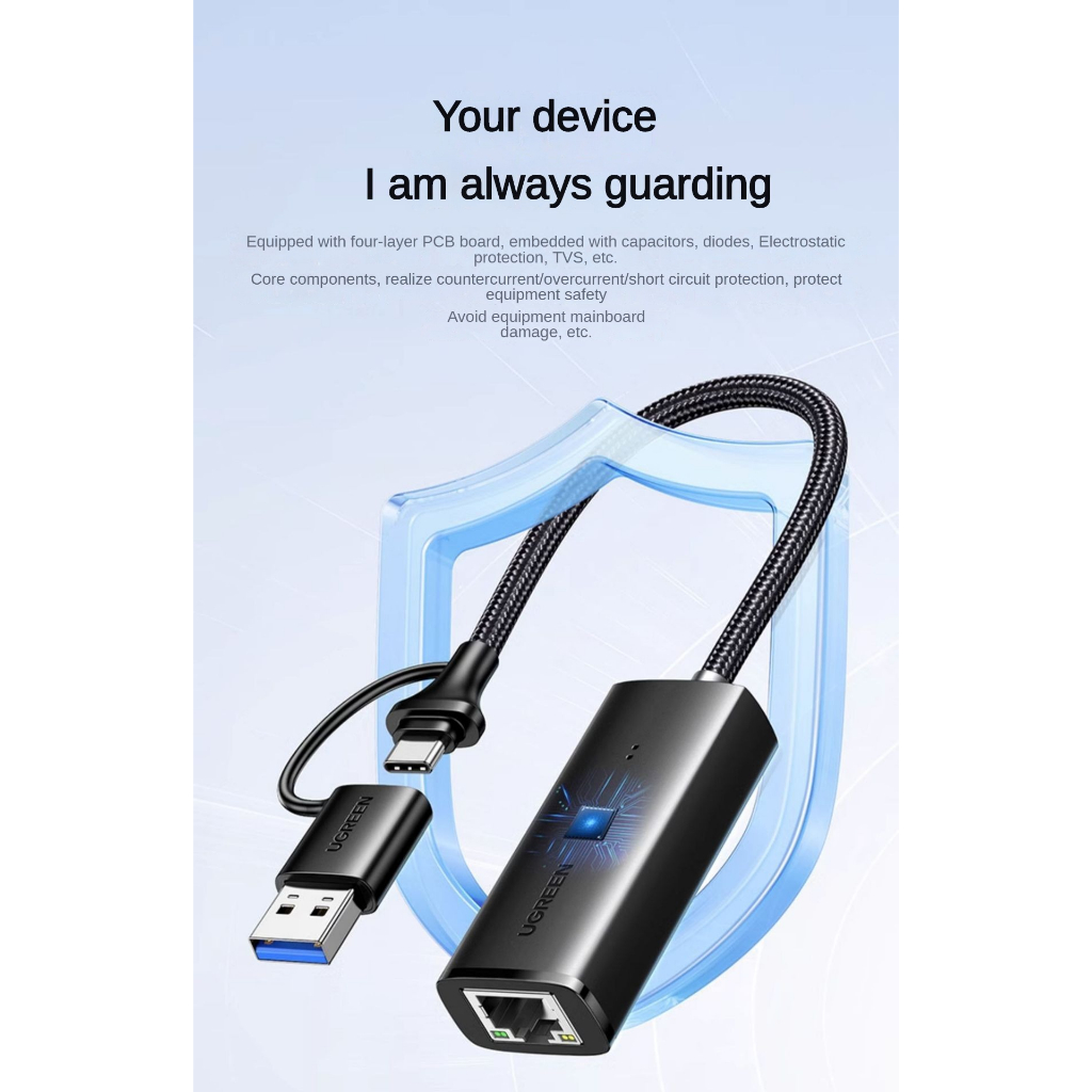 UGREEN Laptop Network Adapter USB 3.0 to Ethernet RJ45 Lan Gigabit Adapter for 10/100/1000 Mbps