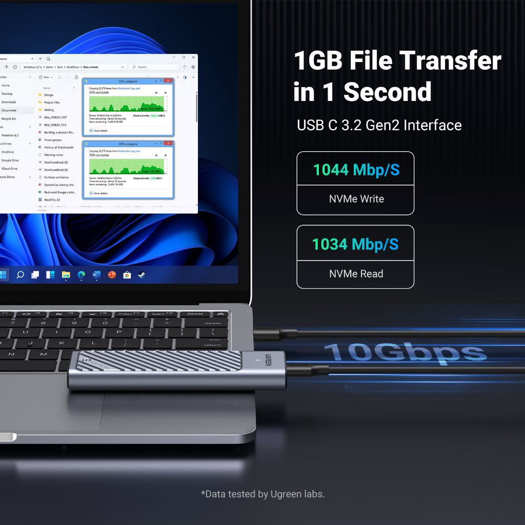 UGREEN M.2 NVMe SATA SSD Enclosure Adapter 10Gbps USB 3.2 Gen2 USB C External Enclosure Supports M and B&M Keys