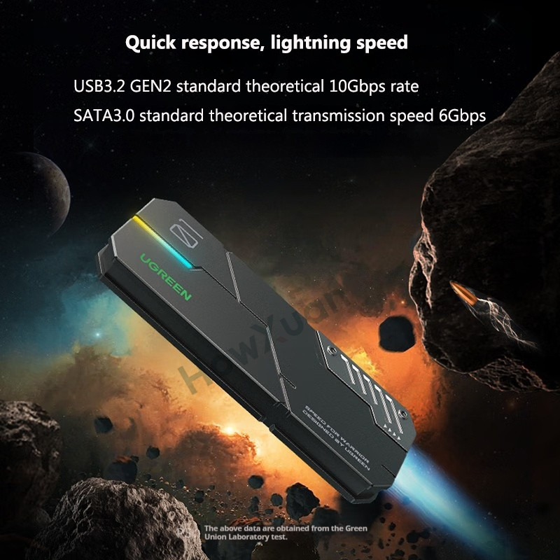 UGREEN M.2 NVMe SATA SSD Enclosure Aluminum 10Gbps External Portable External Hard Drive Case USB 3.2 Gen2 to M2 M-Key Caddy 2280/2260/2242/2230 External Drive Reader
