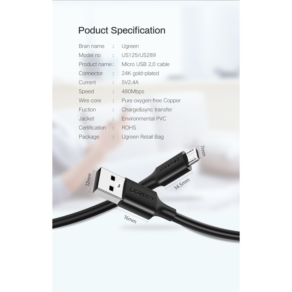UGREEN Micro USB to USB 2.0 Data and Charging Cable for Android - PH