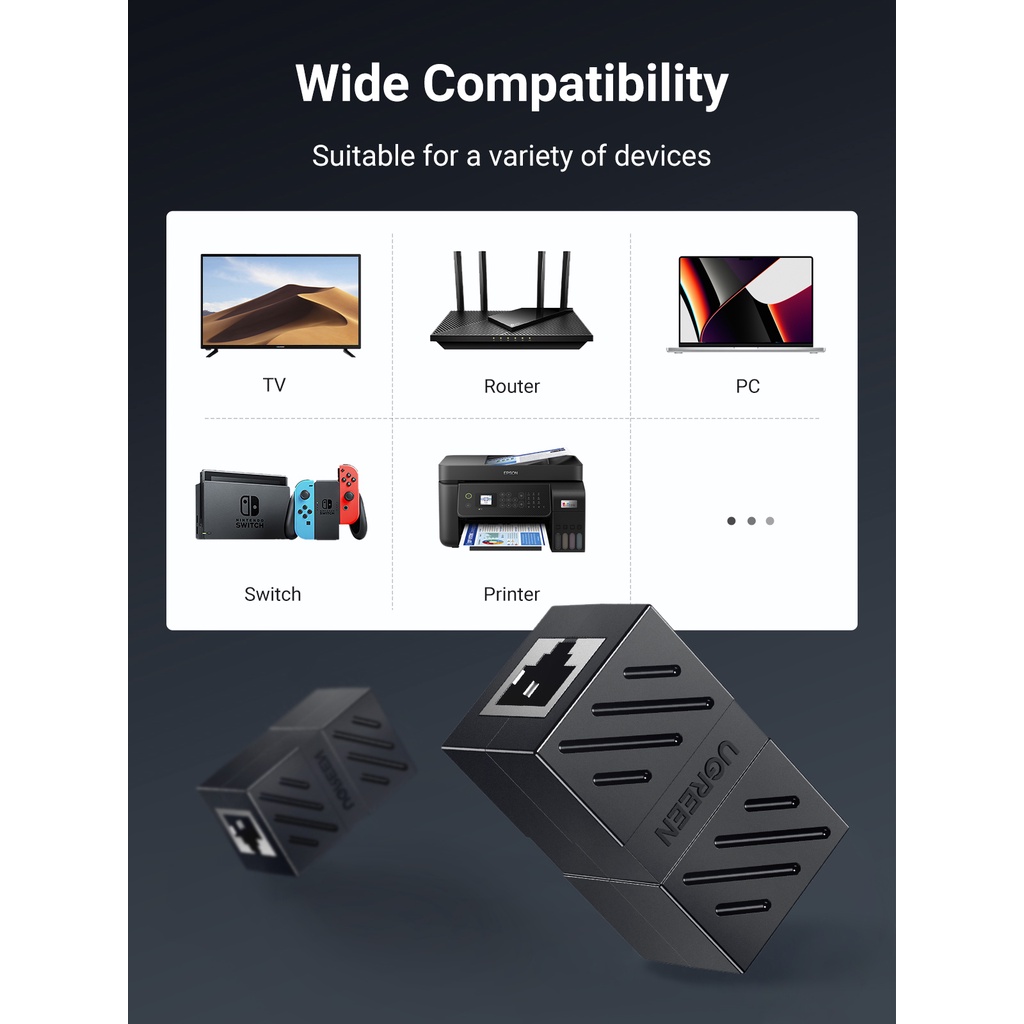 UGREEN RJ45 Connector Network Ethernet Extender Extension for Cat7 Cat6 Cat5e Ethernet Cable Adapter Gigabit Female to Female