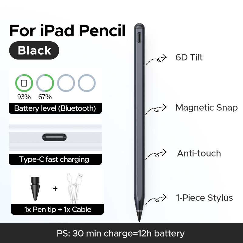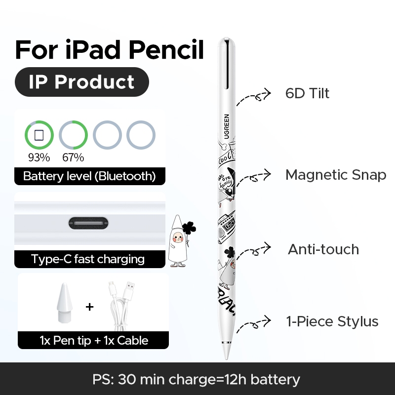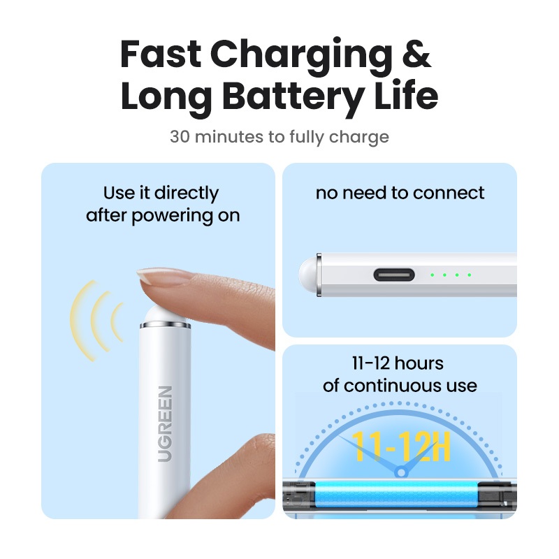 UGREEN Stylus Pen Compatible for iPad Pencil Precise and Smooth Include 3 Replacement Nibs Compatible with iPad 6/7/8/9/10/Pro 11 12.9 Inch/Air 3/4/5, Mini 5/6 Gen