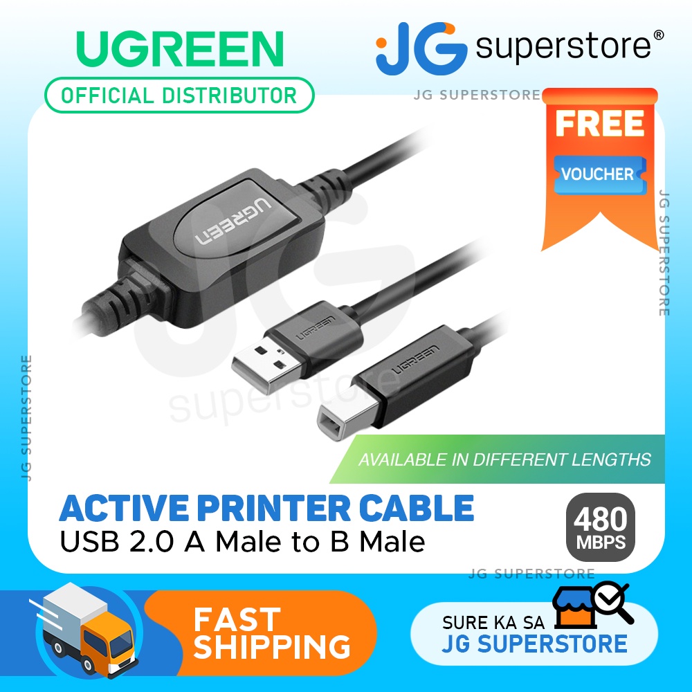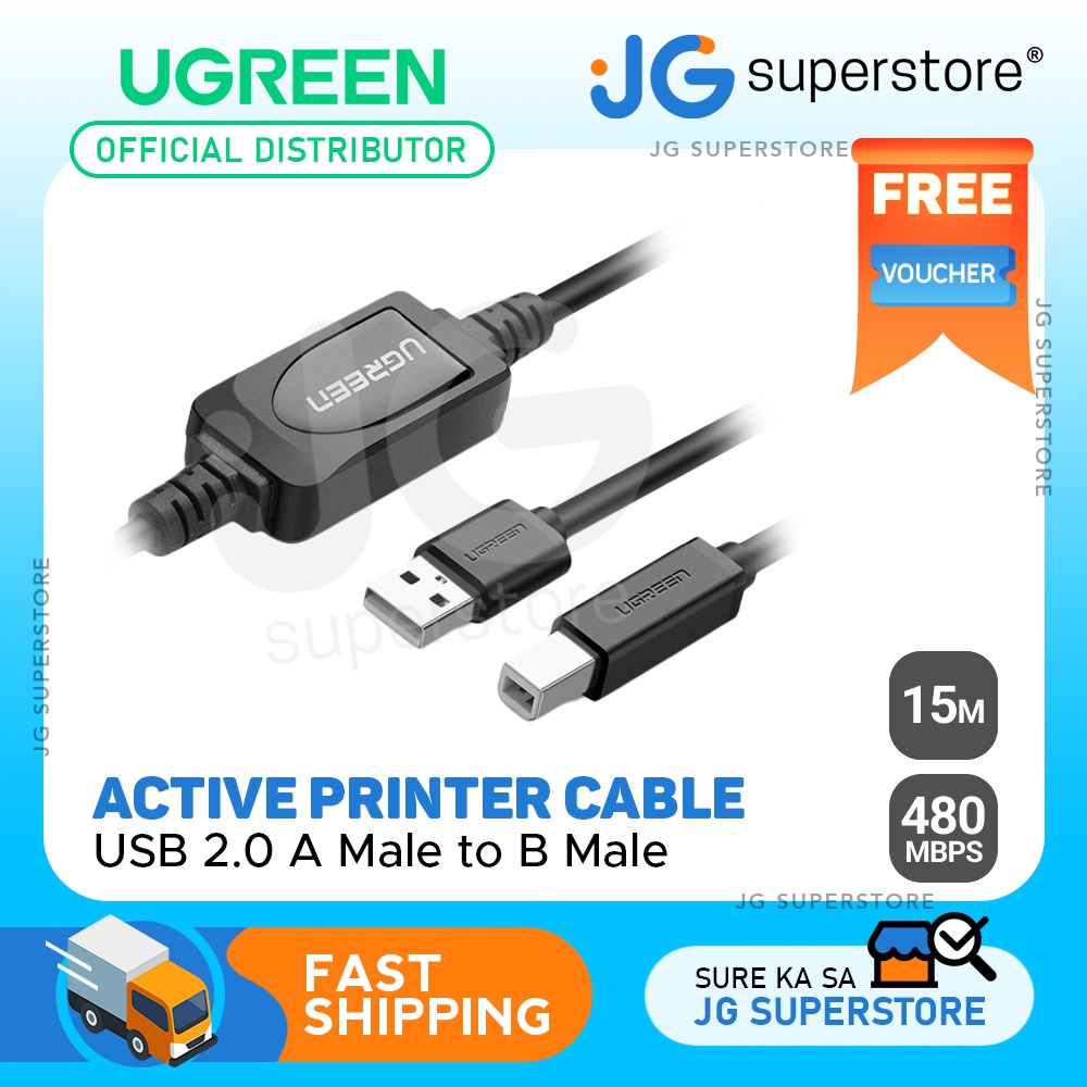 UGREEN USB 2.0 A Male to B Male Active Printer Cable 480Mbps w/ Built-in Amplifier Extender(10M, 15)