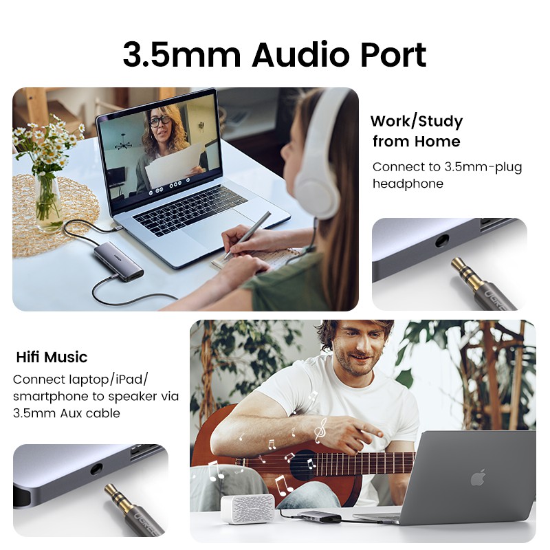 UGREEN USB C Hub 10 in 1 Type C Hub with Ethernet 4K USB C to HDMI VGA PD Power Delivery 3 USB 3.0 Ports USB C to 3.5mm SD/TF Cards Reader Type C Windows Laptops