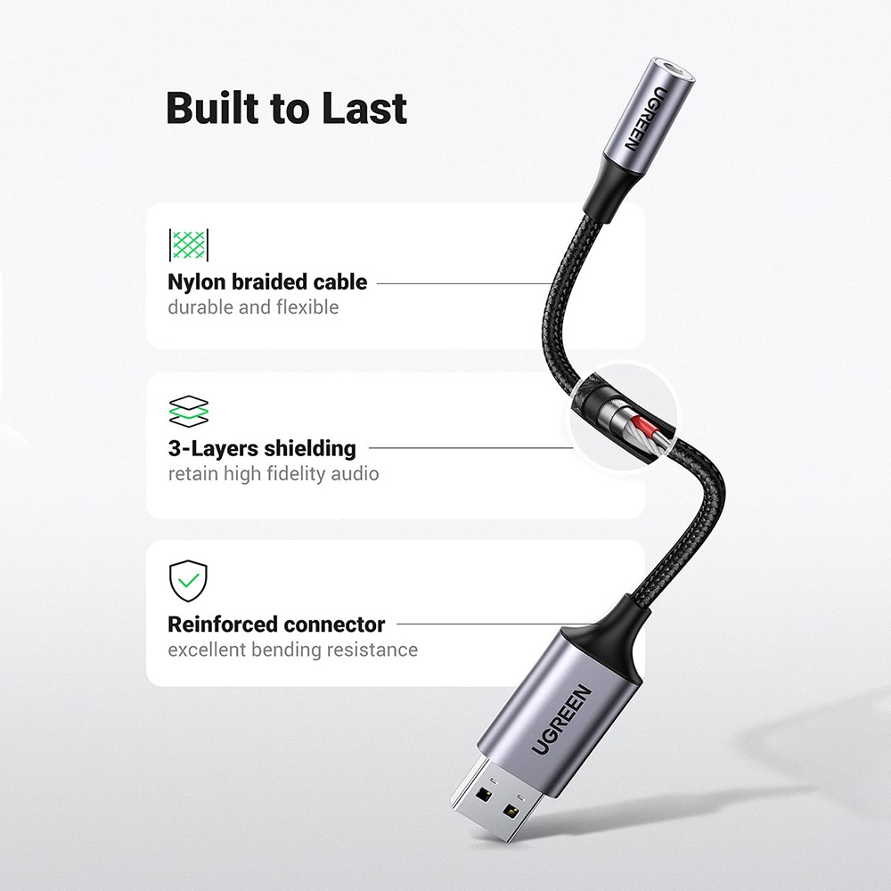 UGREEN USB to 3.5mm Jack Audio Adapter USB Sound Card Support Mic TRRS Headphone DAC 24bit 96kHz