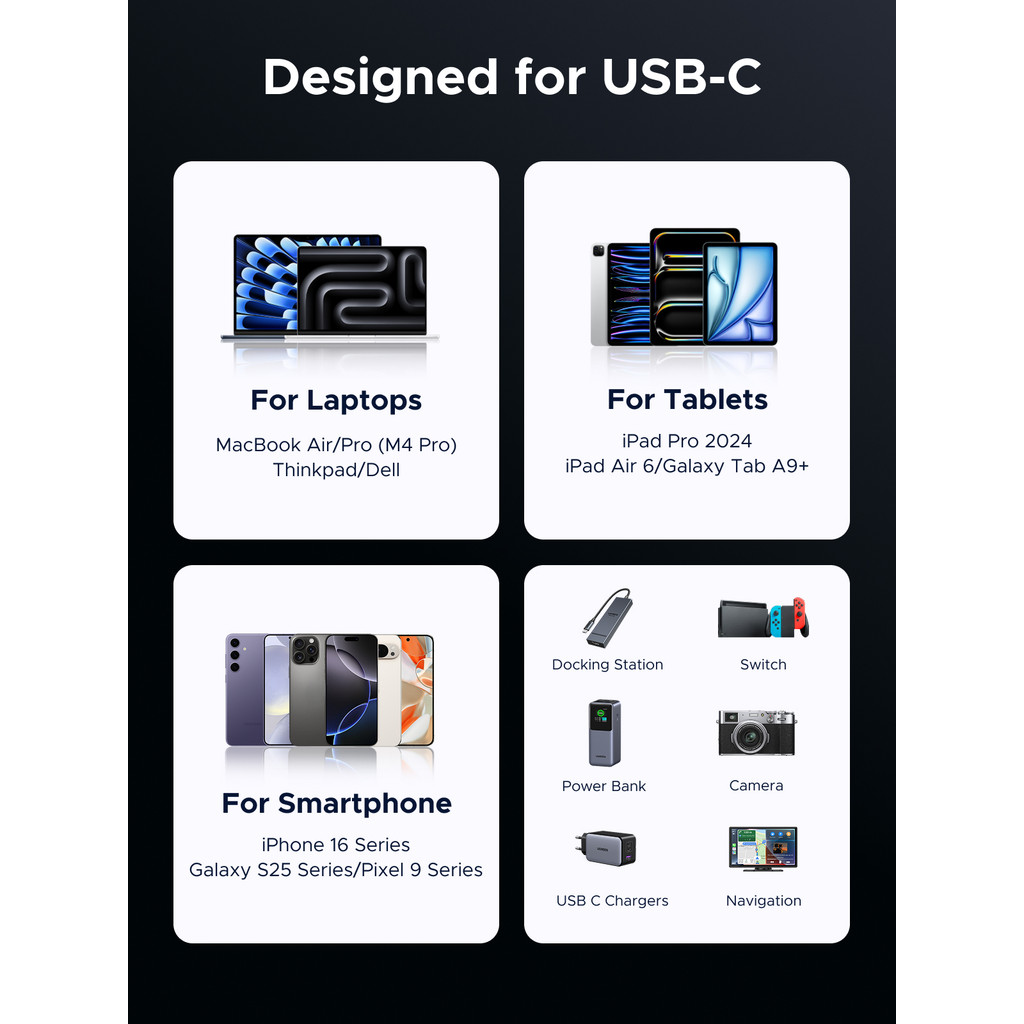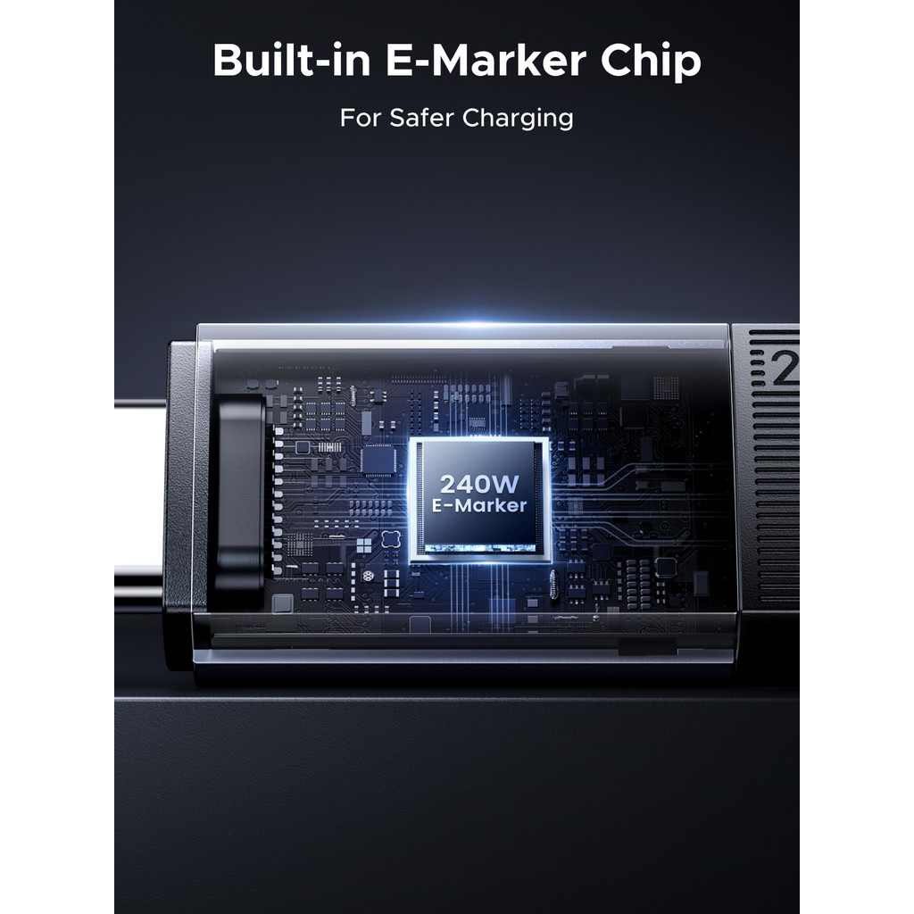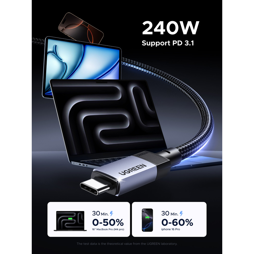 UGREEN USB3.1 Gen2 10Gbps 1M Bulit in E-Marker Chip USB-C to USB-C 240W Charging Data Cable Aluminum Shell Braided Space Gray