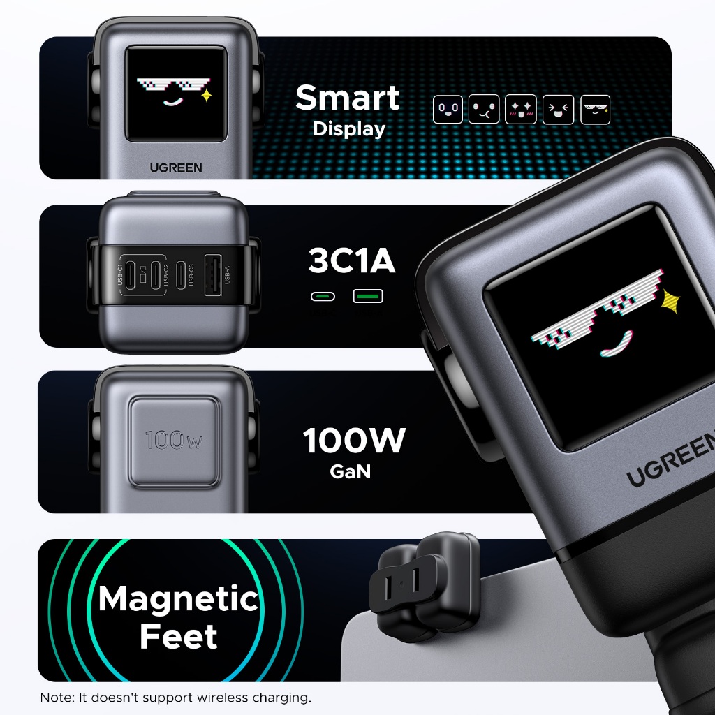 UGREEN Uno 100W Robot GaN Charger Design PD Fast Charger PPS PD3.0 for iPhone 16 15 13 Fast Charge for Xiaomi Laptop Macbook