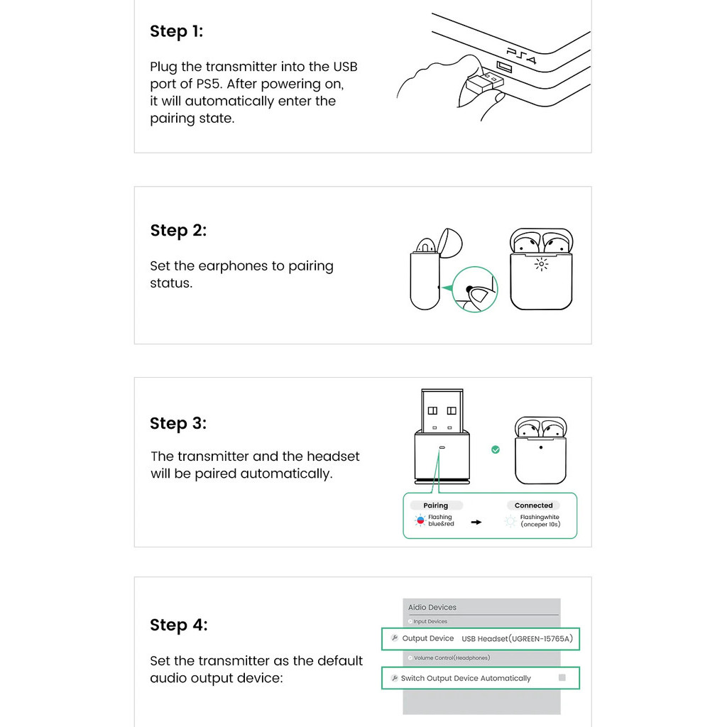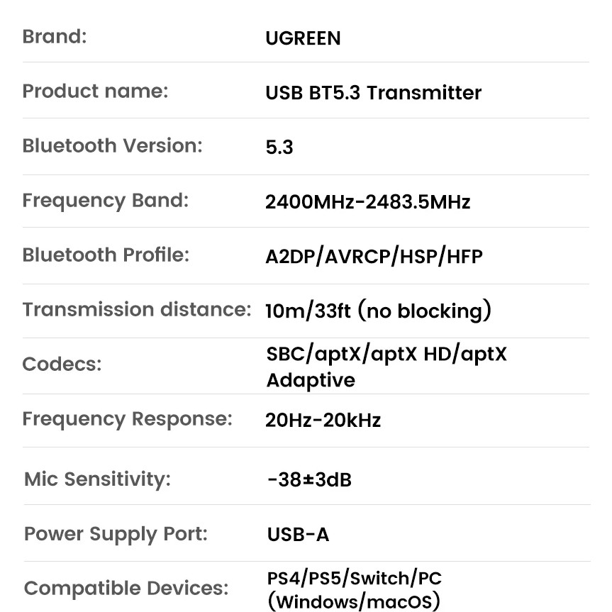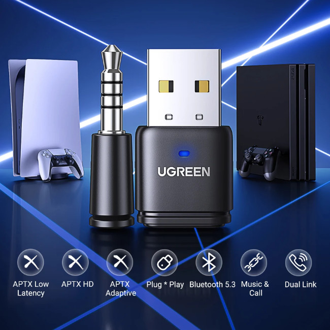 UGREEN Usb Bluetooth5.3 Transmitter aptX HD AD Audio Adapter For PS5 PS4 Nintendo Switch Headset Mic Bluetooth Receiver