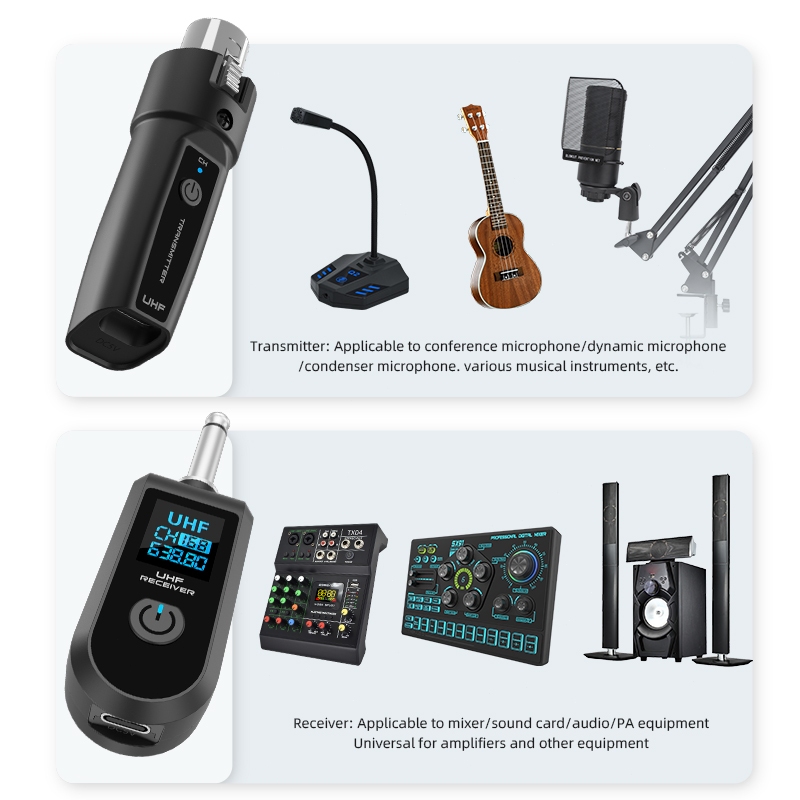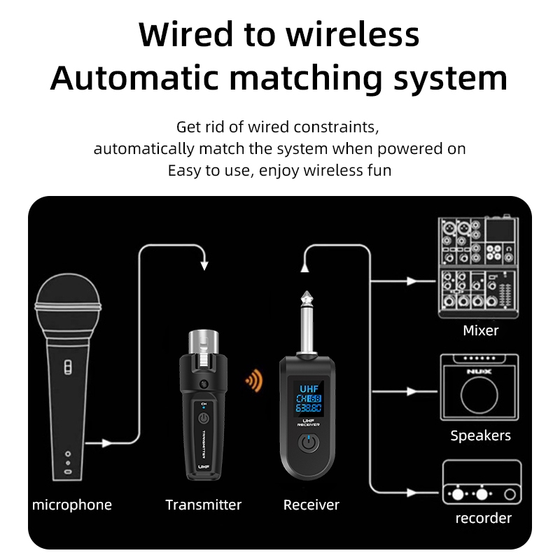 2.4G UHF XLR Adapter System Wireless Microphone Transmitter Receiver System for Dynamic Microphone G
