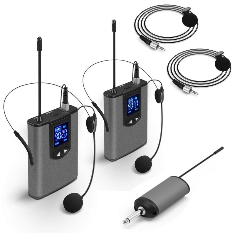 UHF Wireless System Dual Headset Microphones/Lavalier Lapel Mics and Bodypack