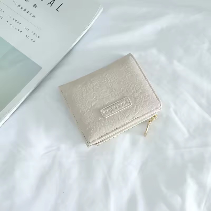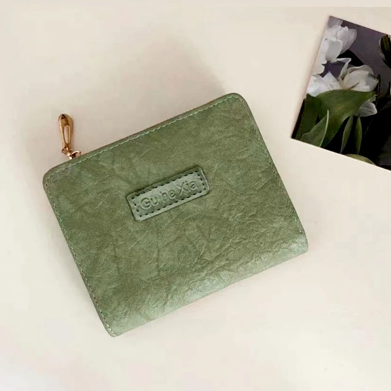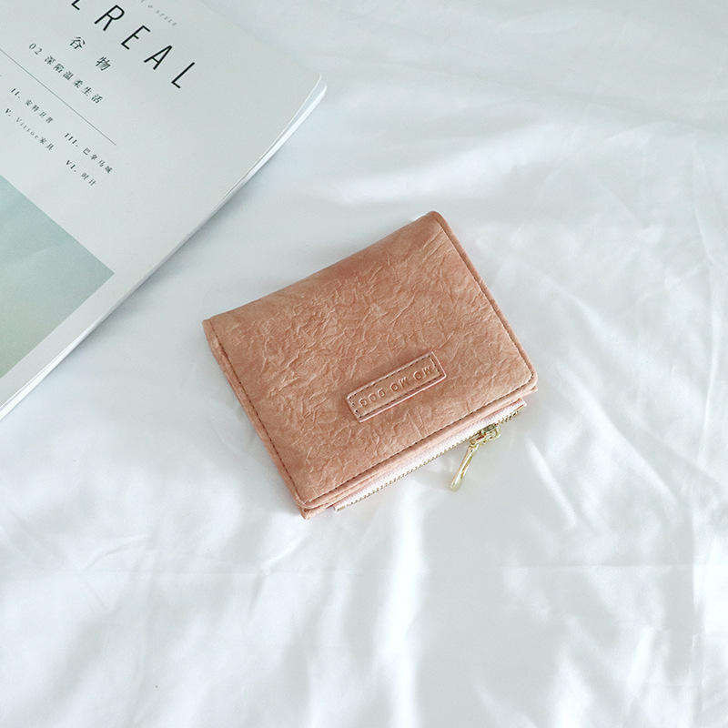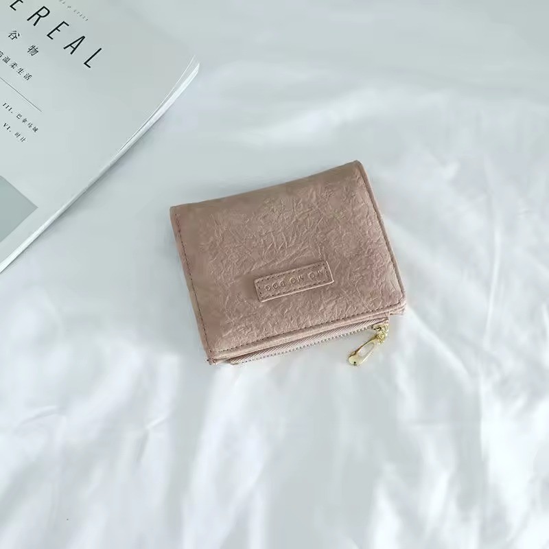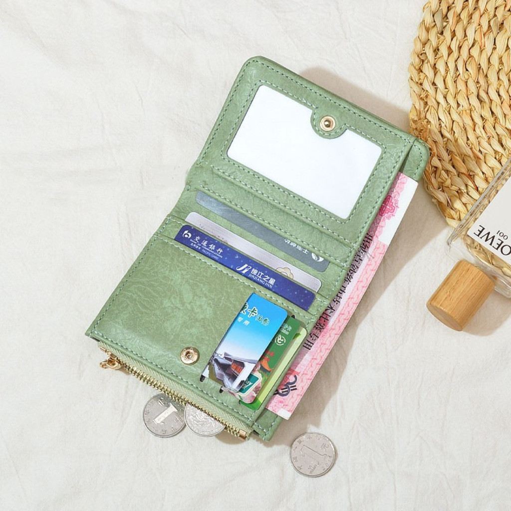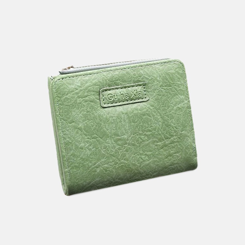 UISN #W901 Korean style retro folding solid color leather PU bi-fold short wallet for women