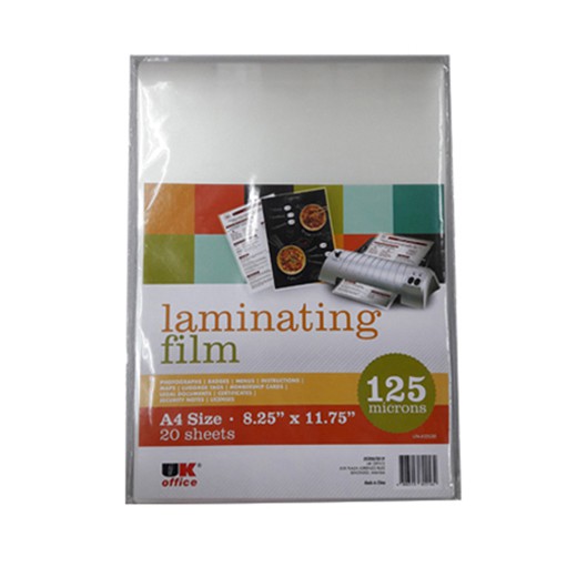 UK Office Laminating Film A4 12520LF 125 Microns A4 20s