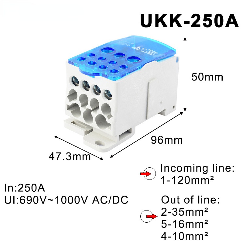 UKK80A 125A 160A 250A 300A 400A 500A Terminal Block 1 in many Out Din Rail Distribution Box Universal Electric Wire Connector